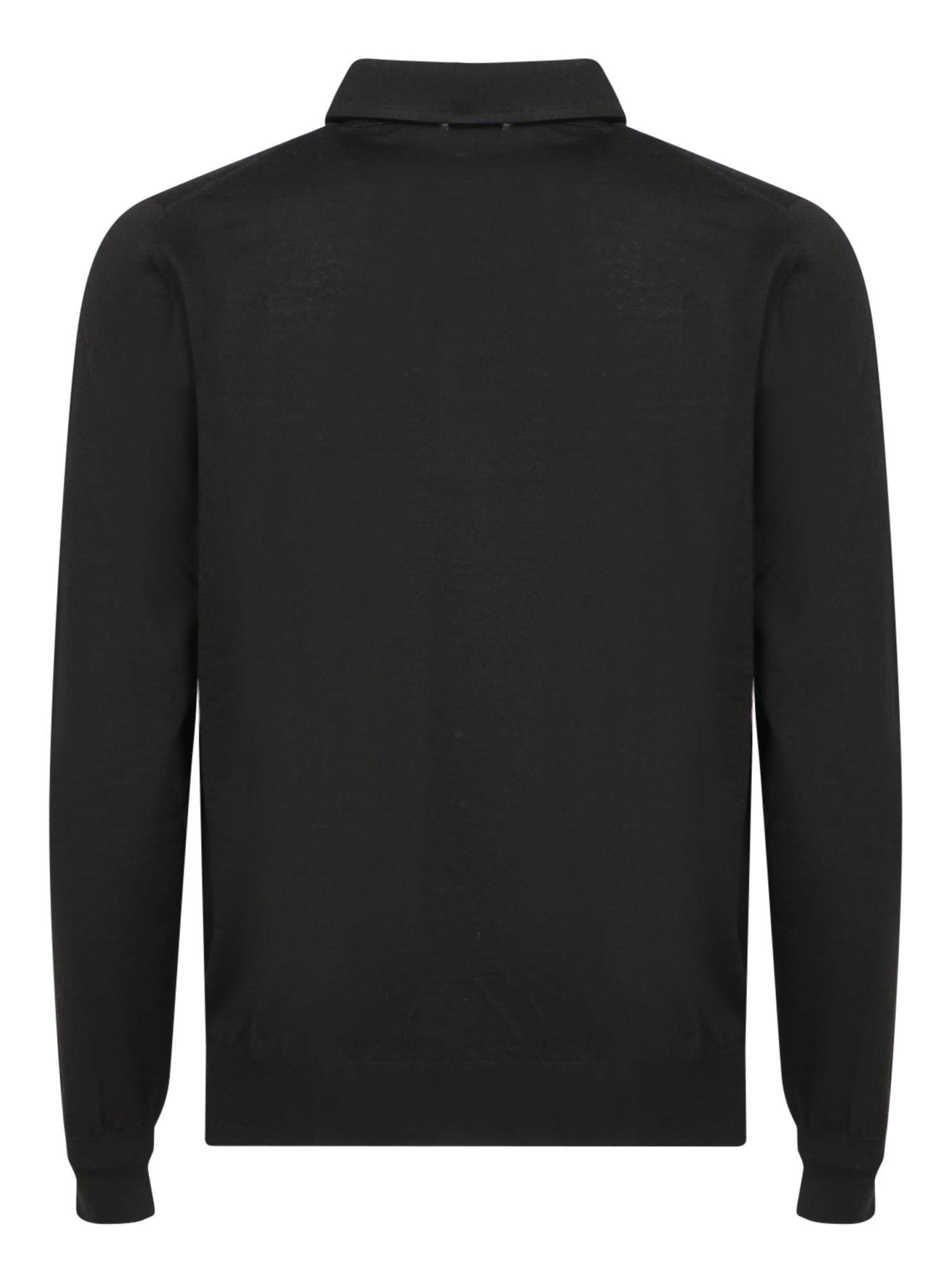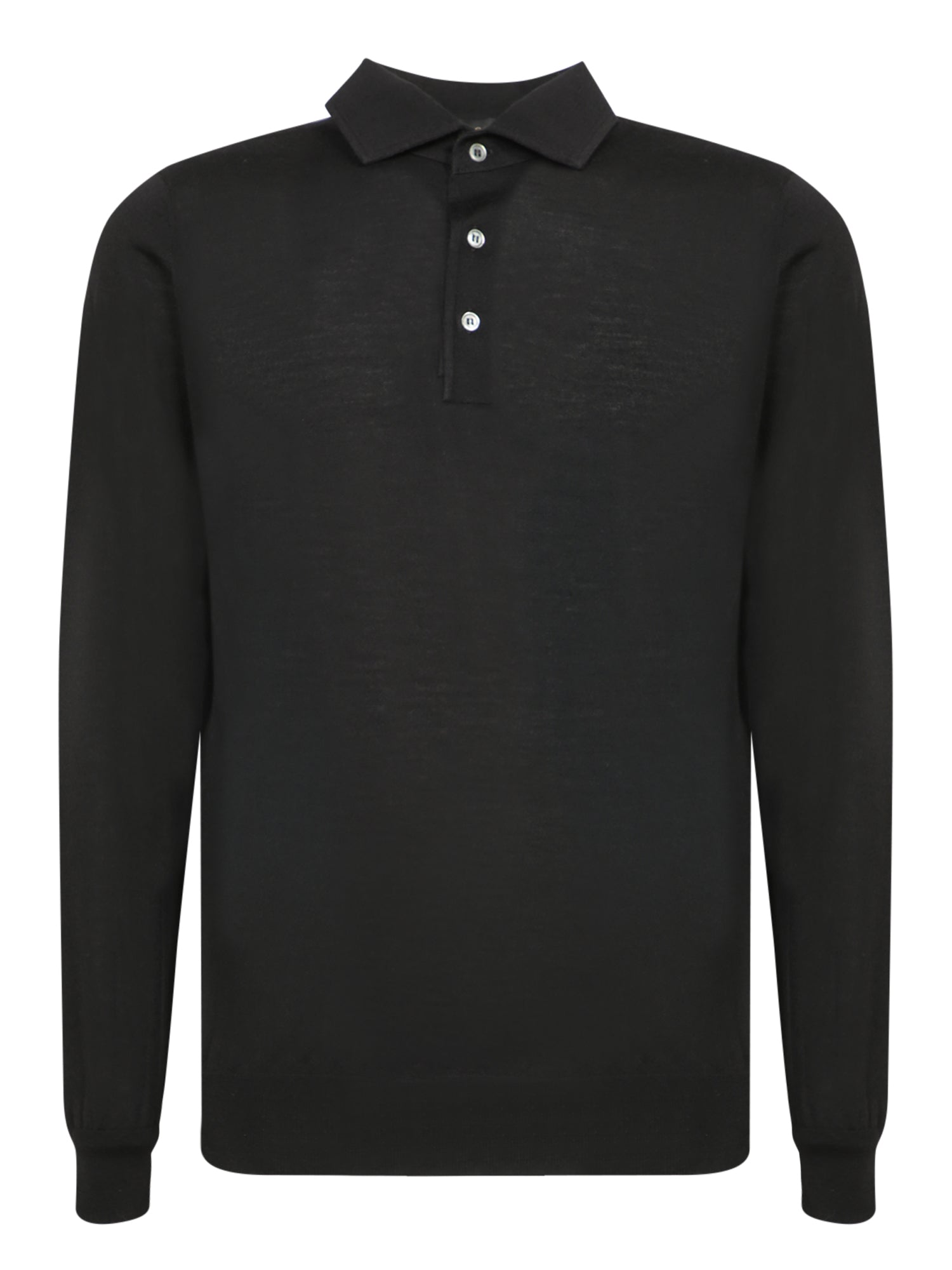 Exclusive long-sleeve polo crafted from a luxurious blend of wool, silk, and cashmere, featuring a sleek and elegant design with refined details, perfect for a sophisticated look.