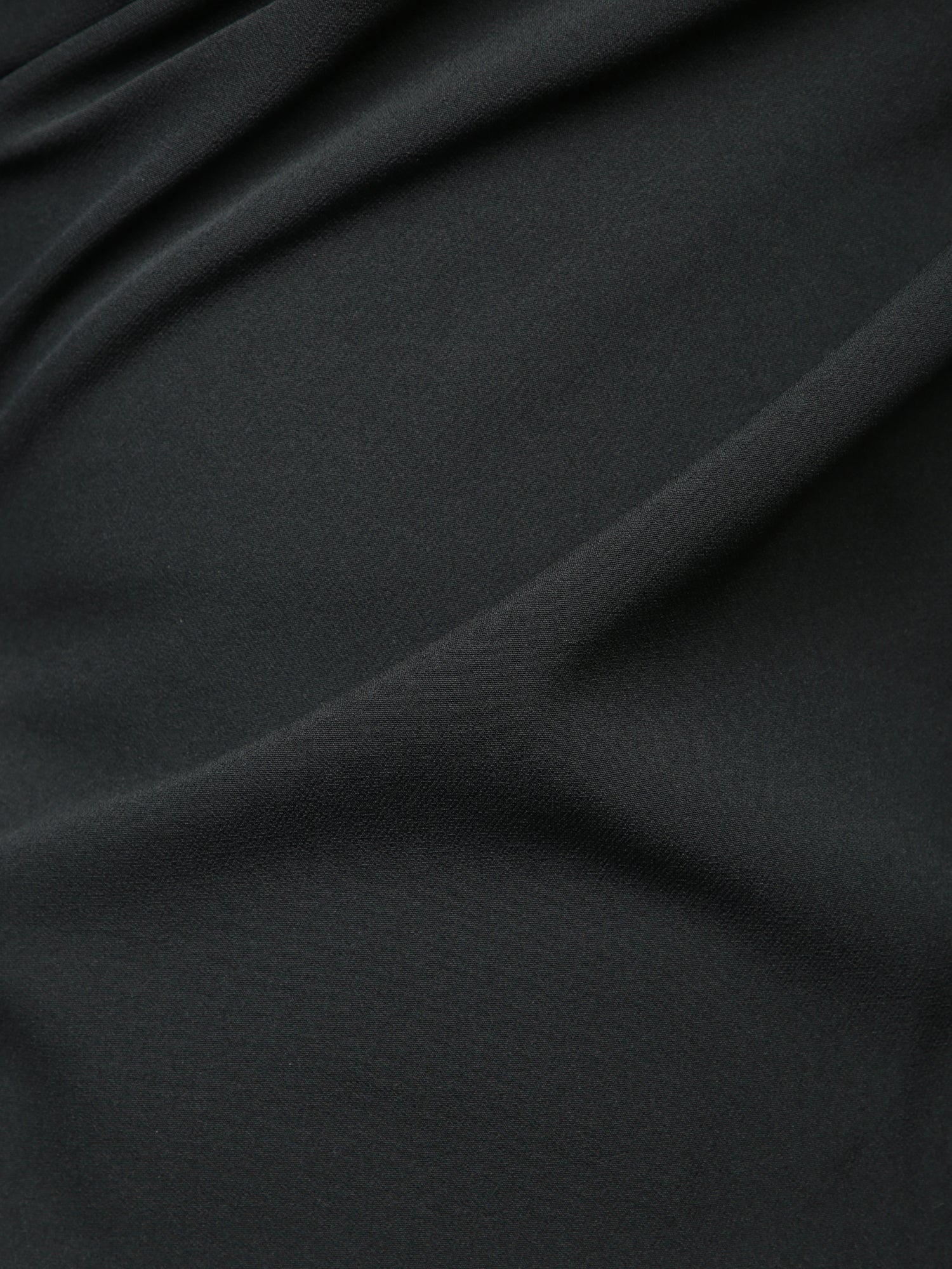 Long sleeves. Deep V-neckline with crossover detail. Stretch fabric.