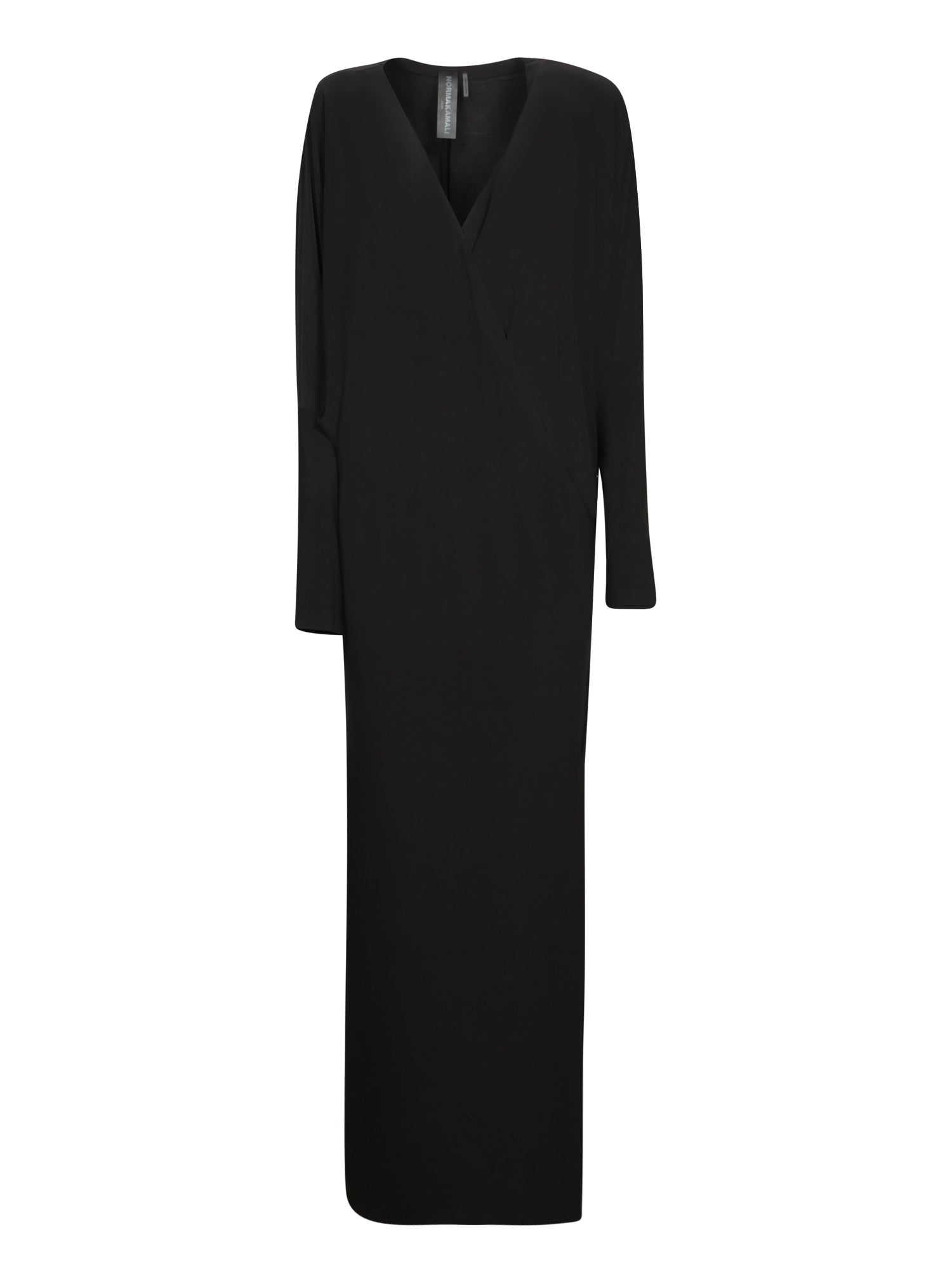 This elegant and versatile dress from Norma Kamali features a figure-flattering wrap silhouette, enhanced with a bold side slit for a touch of sensuality.
