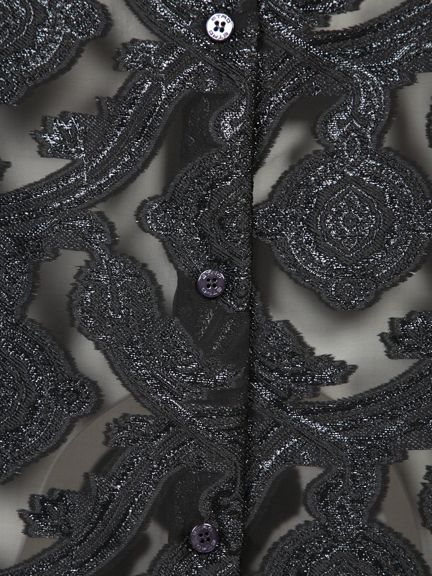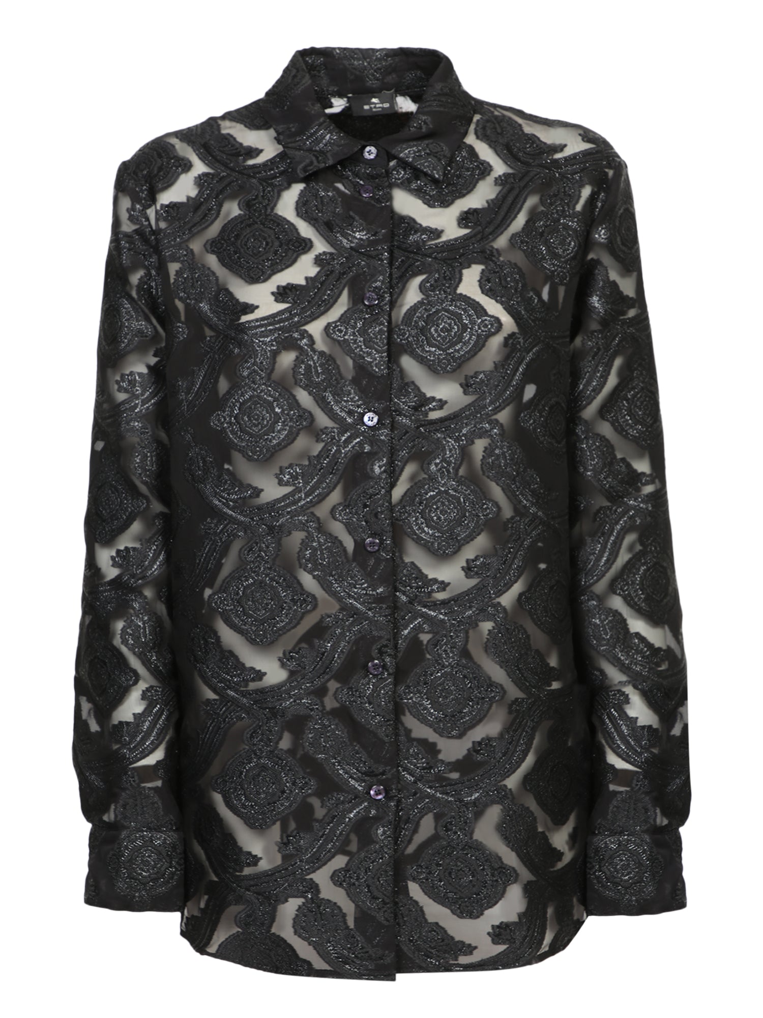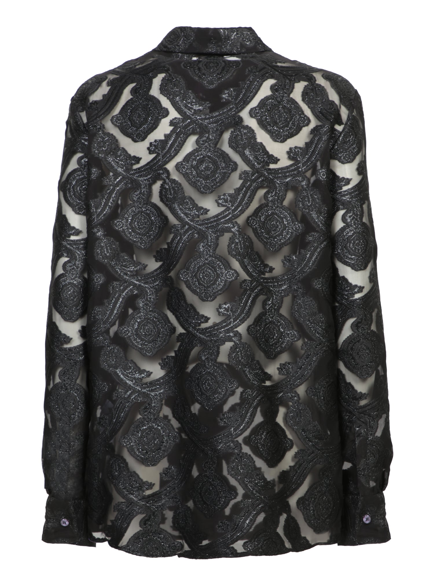 Explore the subtle elegance of Etro's Organza Tattoo Shirt, perfect for formal evenings or sophisticated events. The intricate black-on-black design adds a touch of mystery.