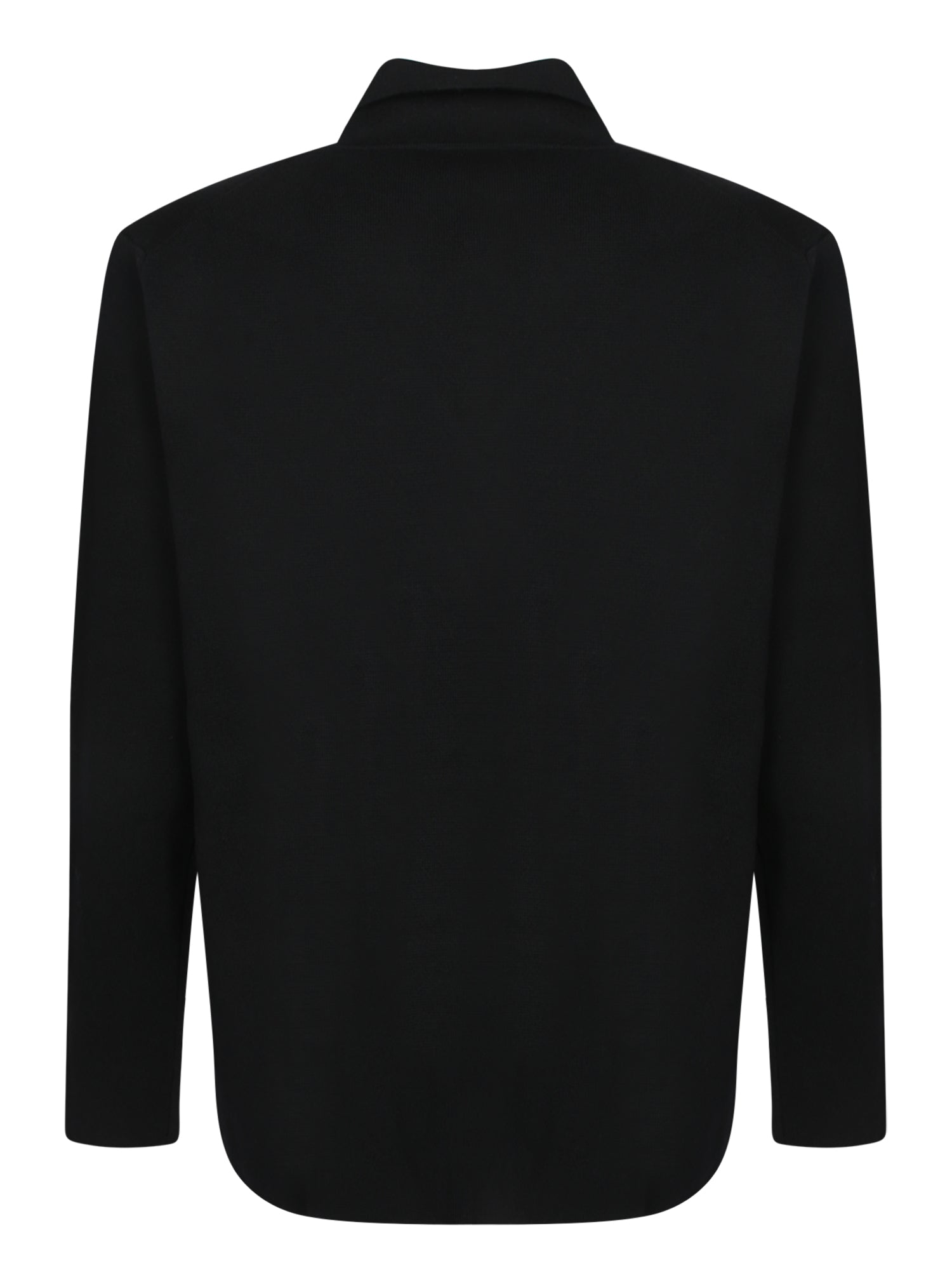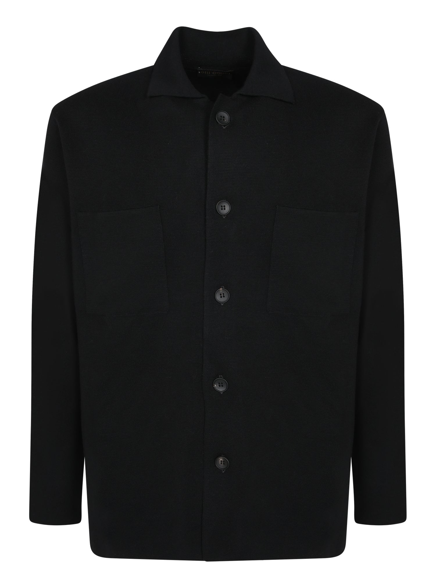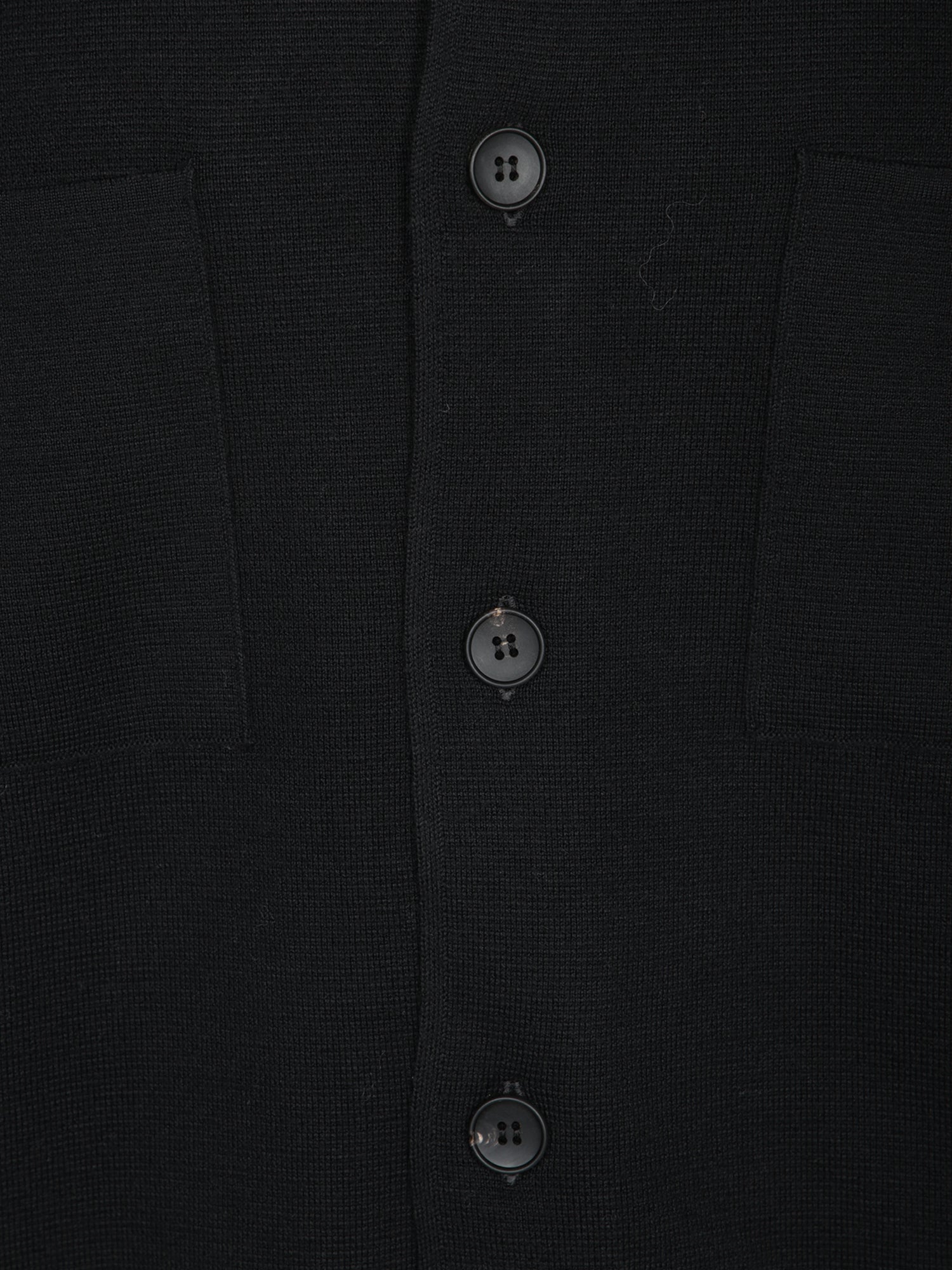 Wool fabric. Pointed collar. Button front closure. Two chest patch pockets.