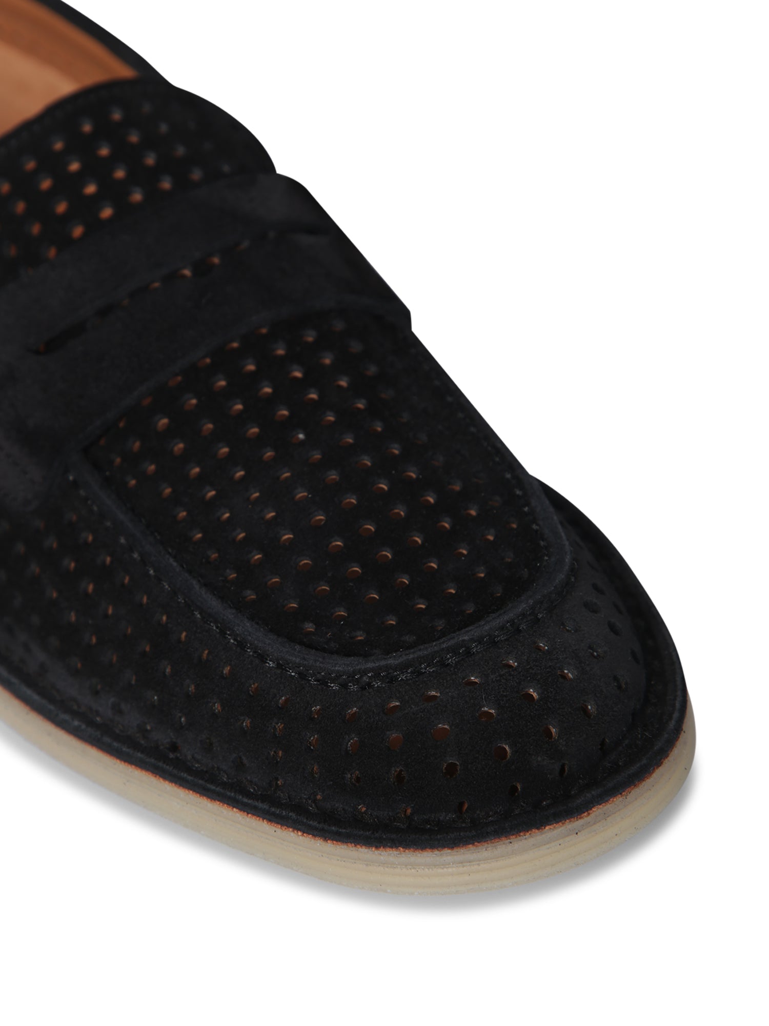 Elegant in design, this Dolce & Gabbana loafer is crafted in black suede with perforated detailing for a touch of distinctive style. Ideal for formal occasions or casual-chic events.