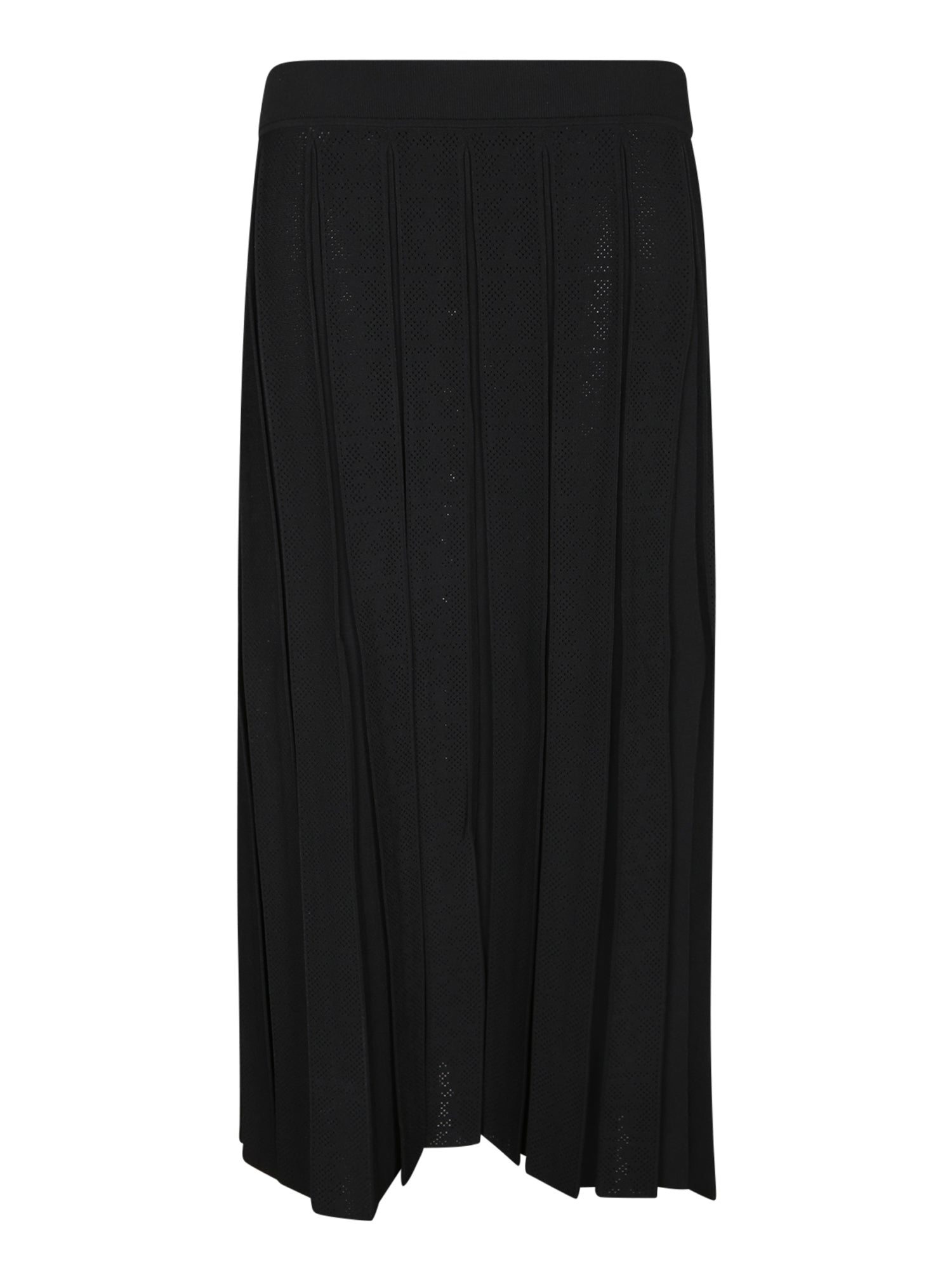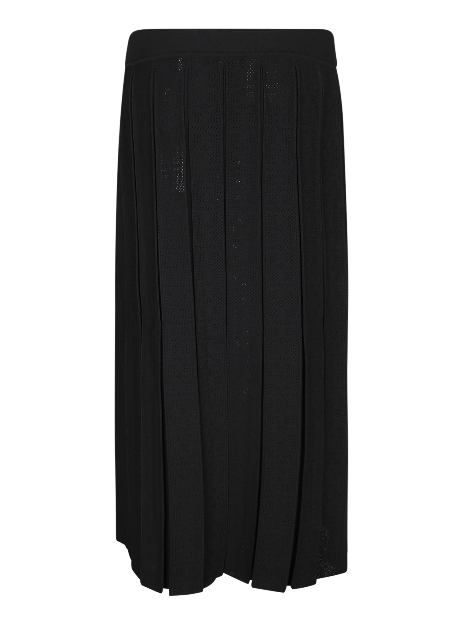 Black pleated mini skirt. Perforated details. Elastic waistband.