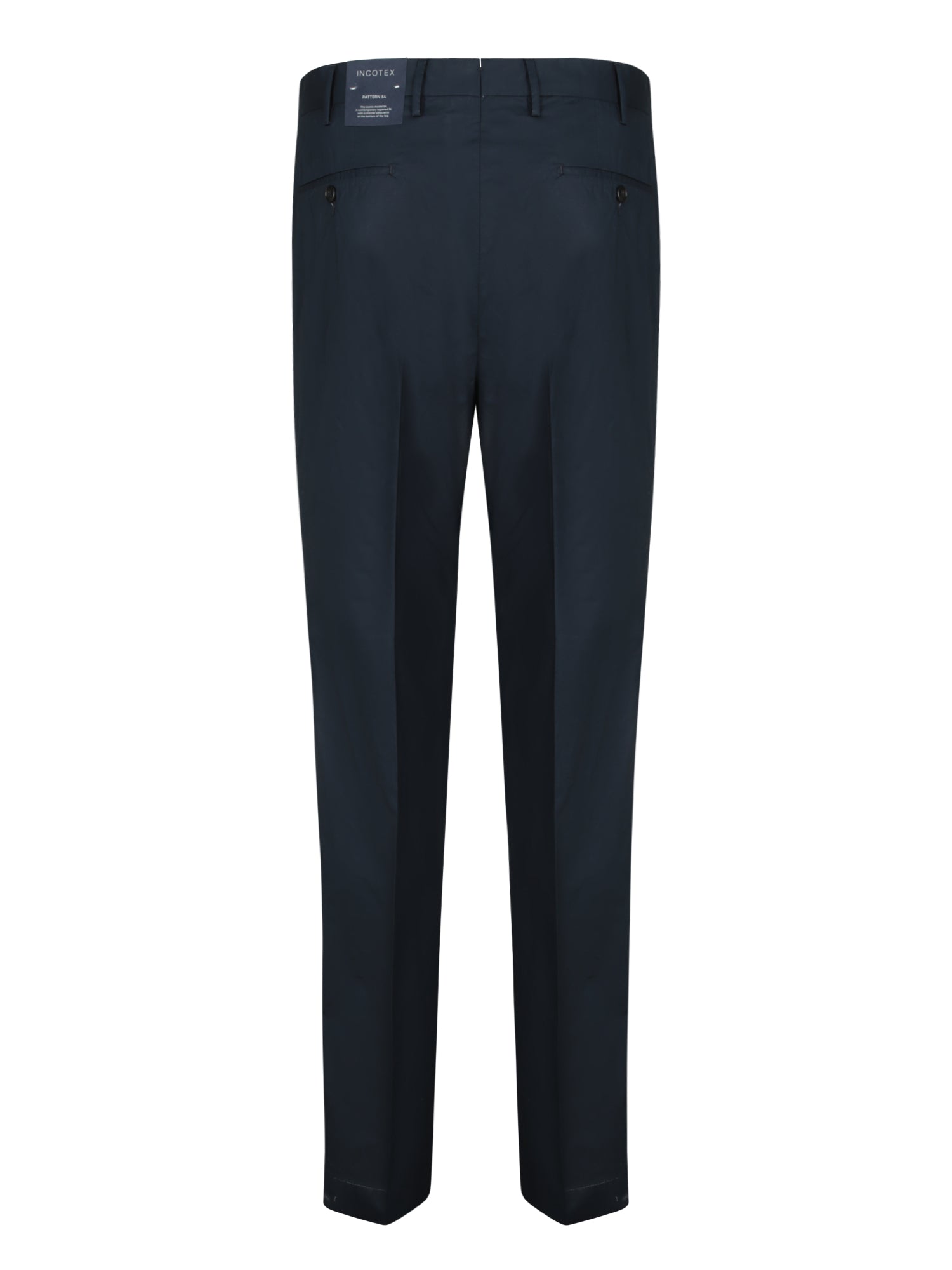 Elegant and versatile, these INCOTEX black poplin pants feature a modern 'carrot' cut that tapers down, ideal for a sophisticated look on any occasion.