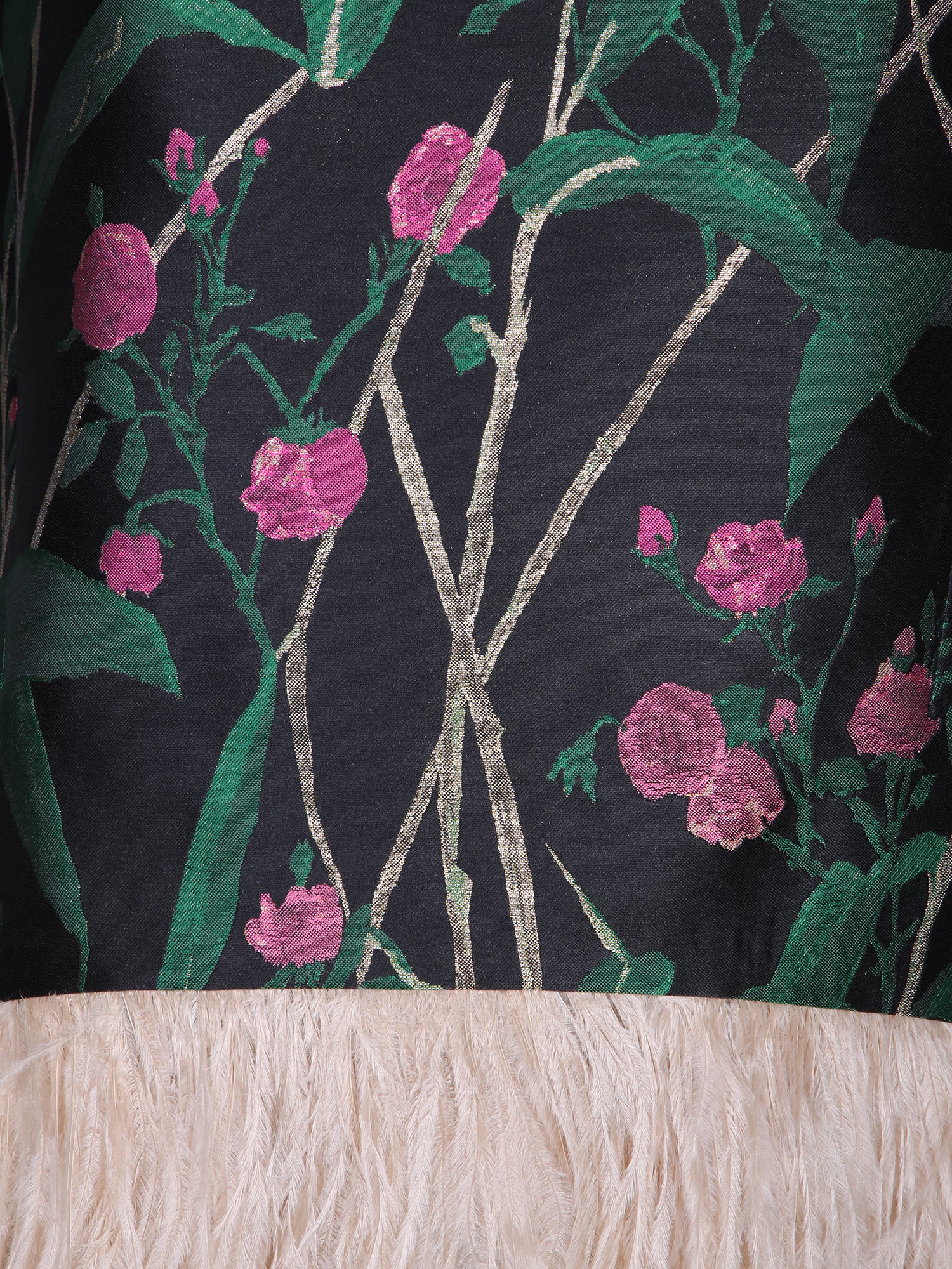Black Scala Feathers Bamboo Jacq Top with Fringes