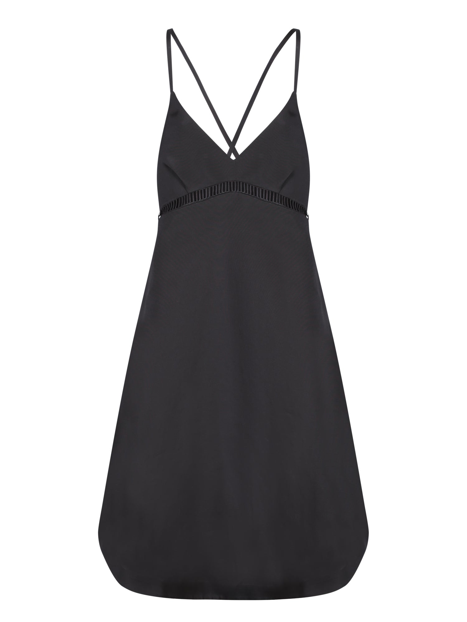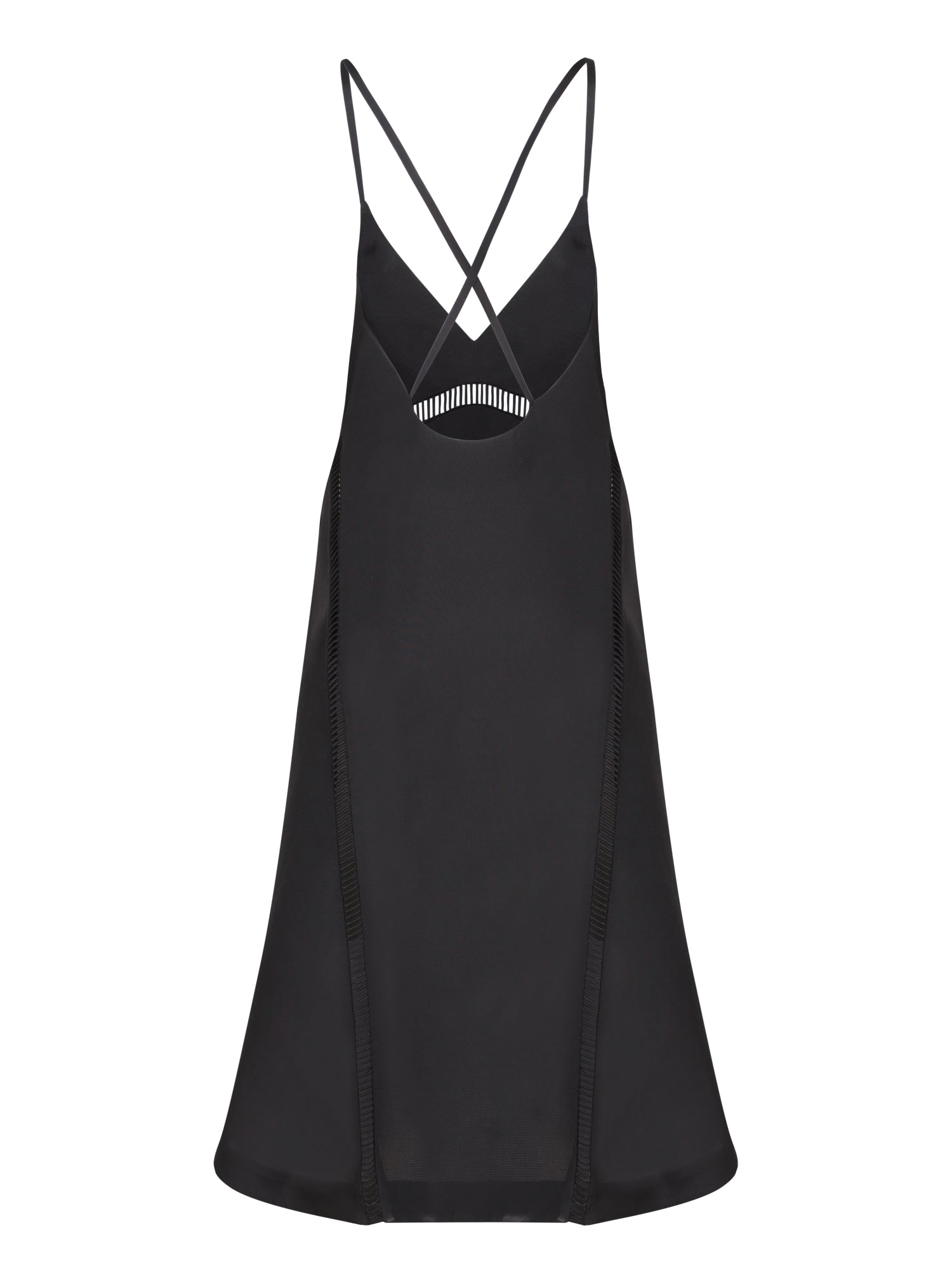 Midi dress with thin cross-back straps. Elastic smocked stitching detail at the waist. Silk and cotton blend fabric.