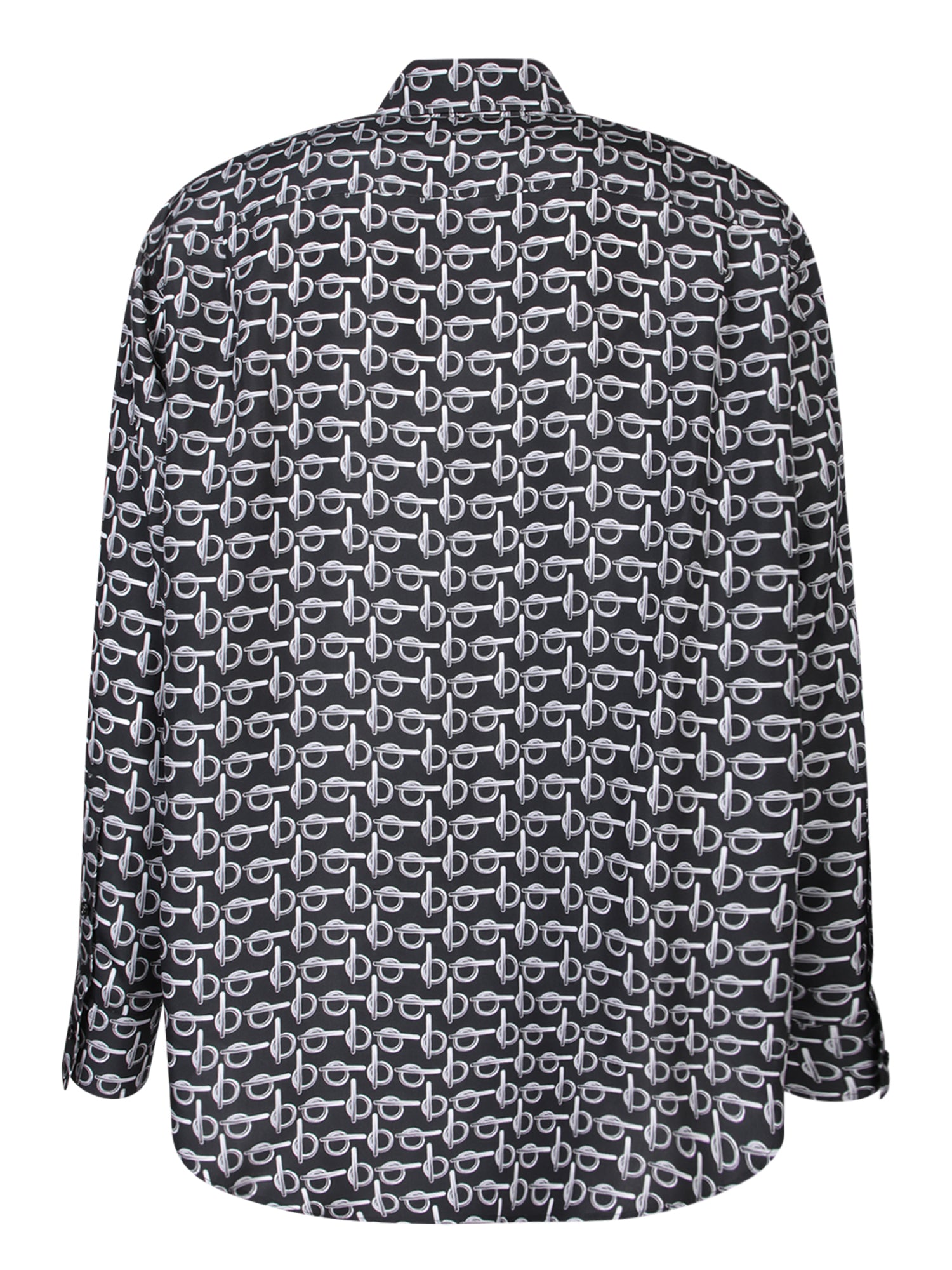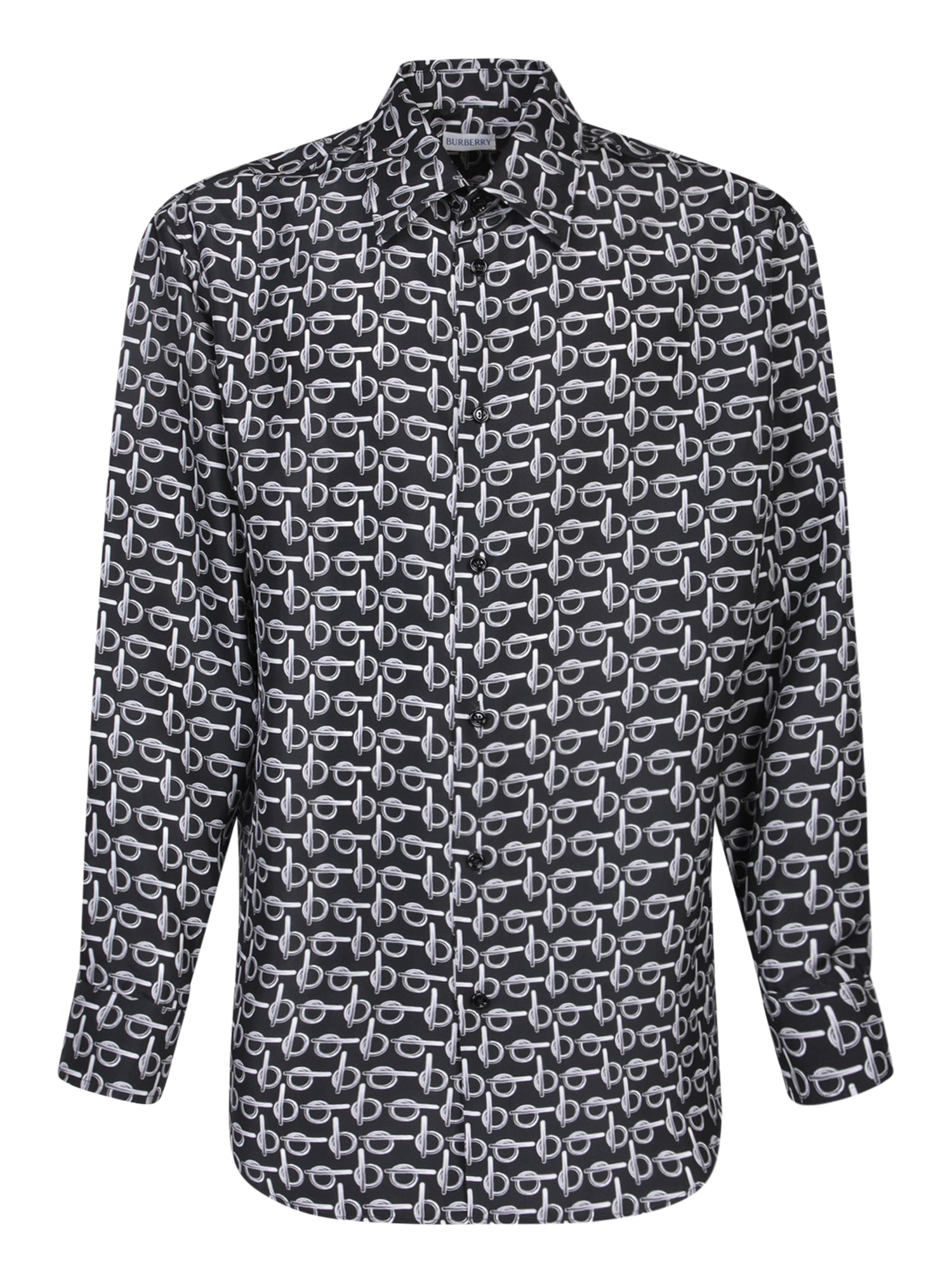 The elegance of the Burberry monogram merges with a contemporary design. This black silver shirt features a refined silhouette and distinctive tailoring details.