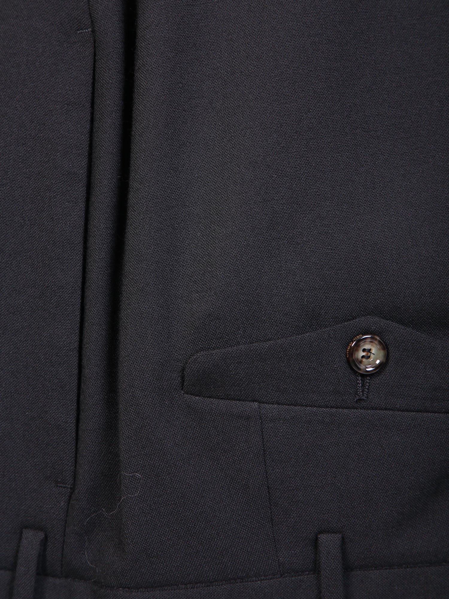 Notched lapels. Single breasted. Front button fastening. Long sleeves. Chest welt pocket. Two side patch pockets. Mid rise. Drawstring waist. Concealed front fastening. Two rear button fastening pockets. Tapared leg. Color: black