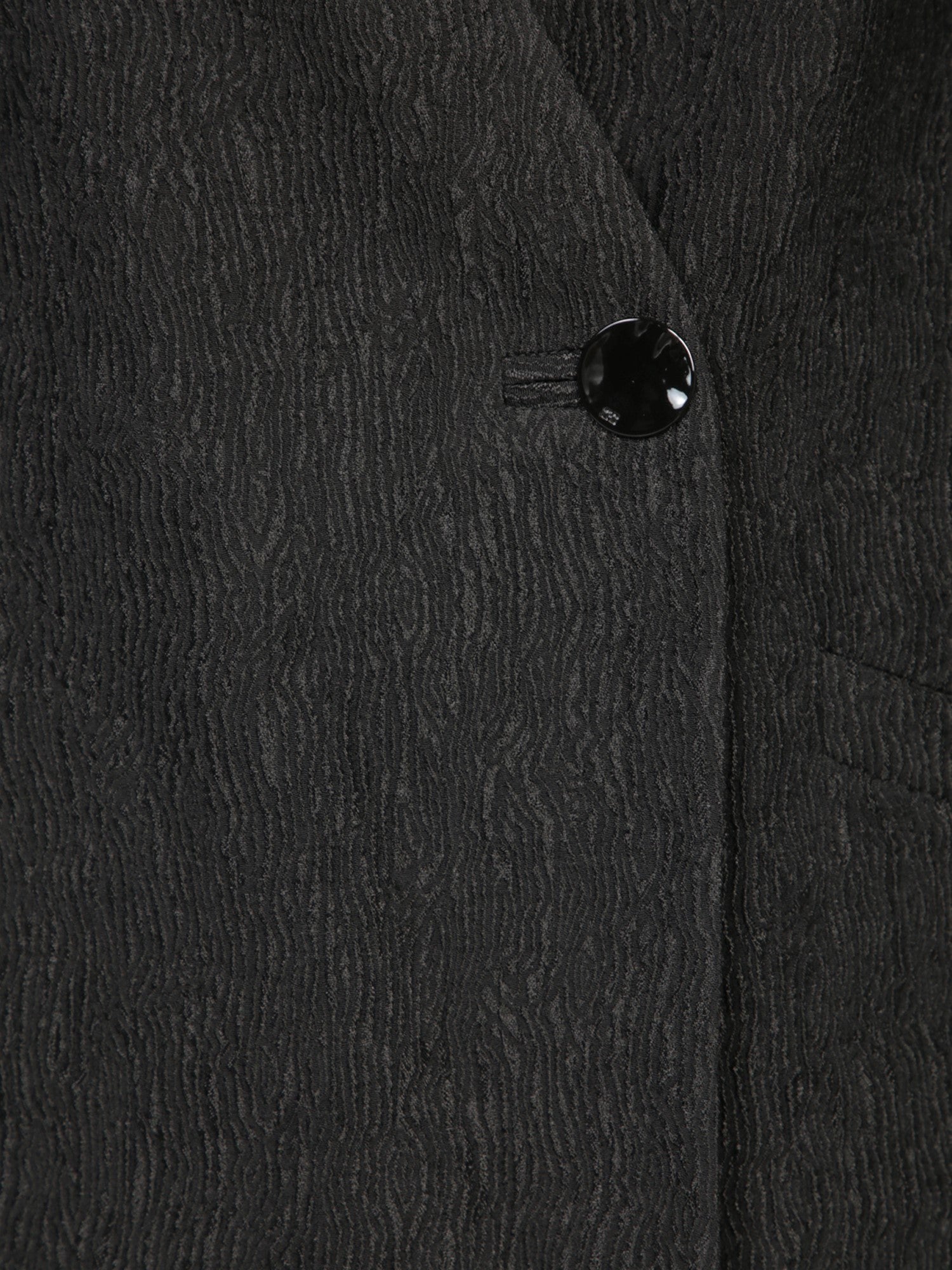 Boxy cut blazer. Made from stretch viscose. Single button front closure.