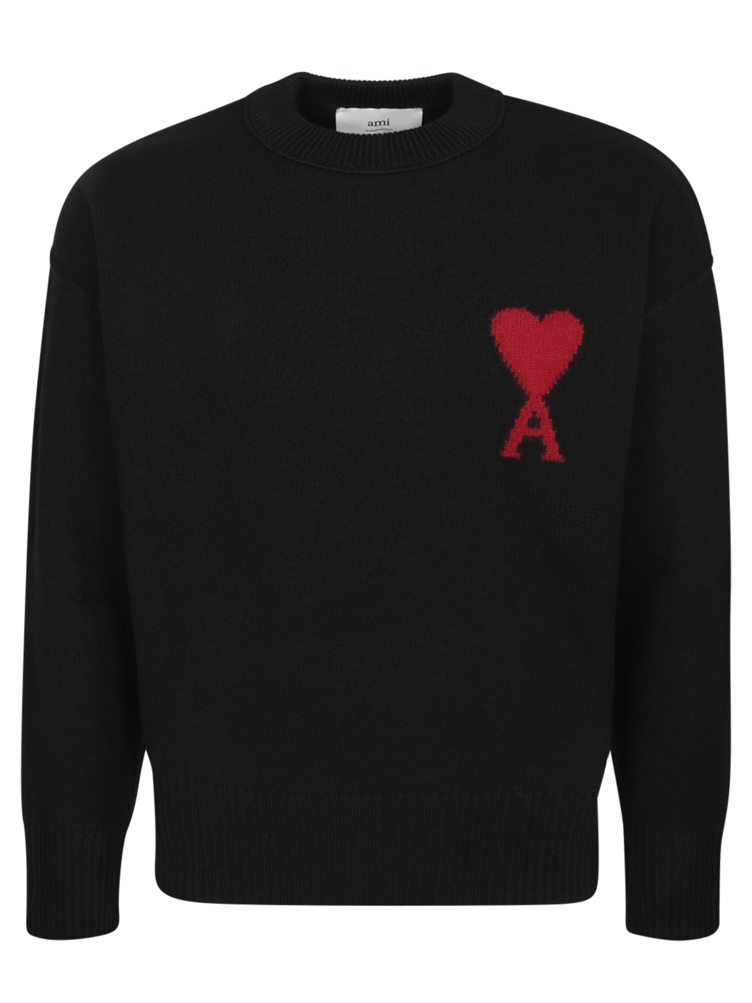 Ribbed neck, cuffs, and hem. Solid color design with a red heart logo detail.