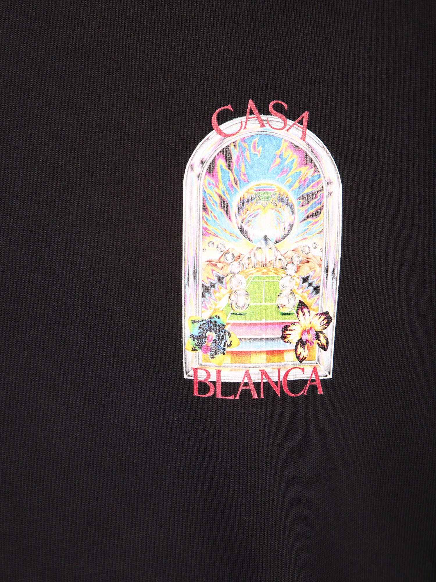 Soft cotton. Landscape print on chest. Classic cut.