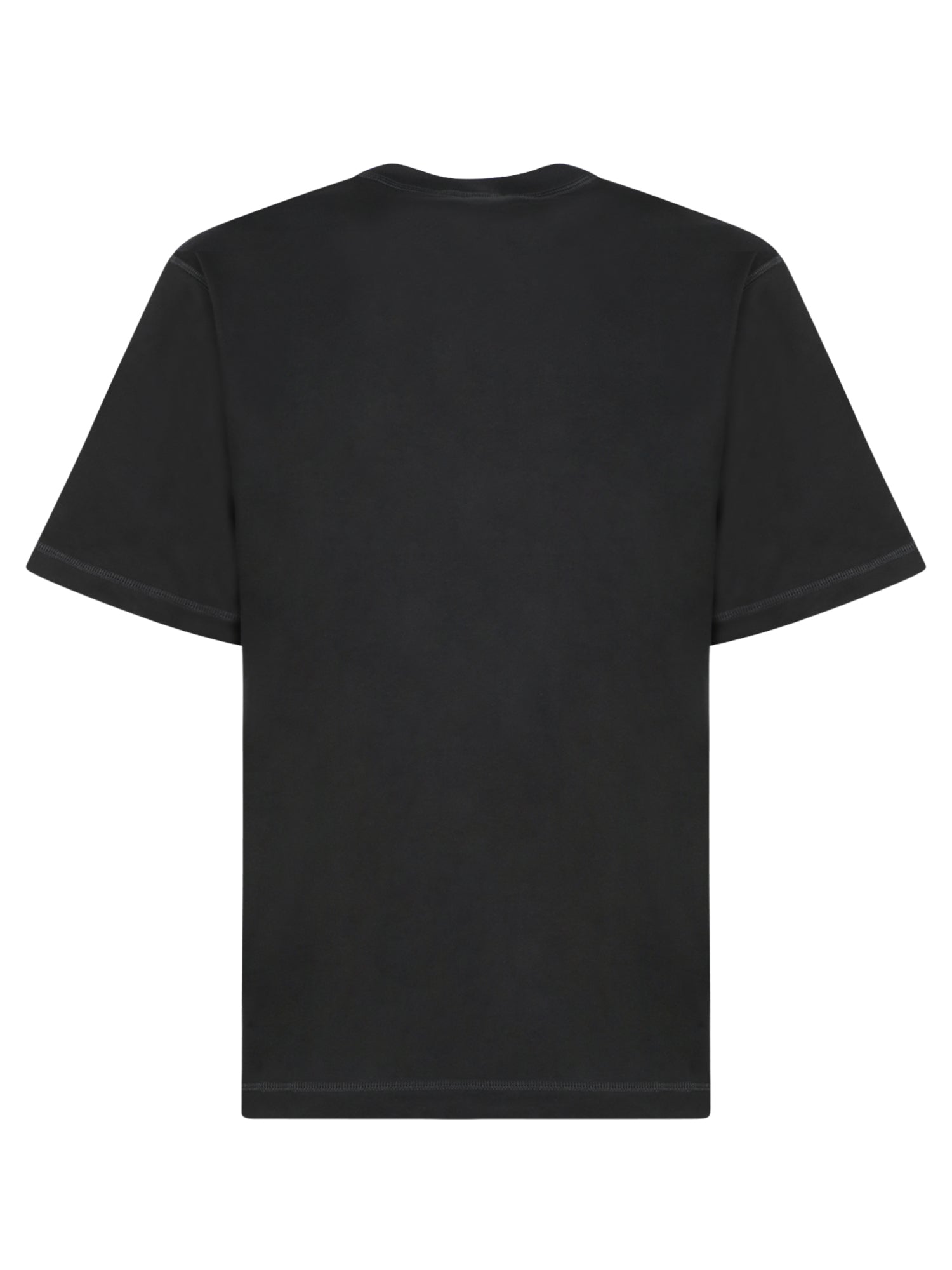 Short-sleeve black T-shirt. Features a tone-on-tone logo plaque on the chest. Crew neck.