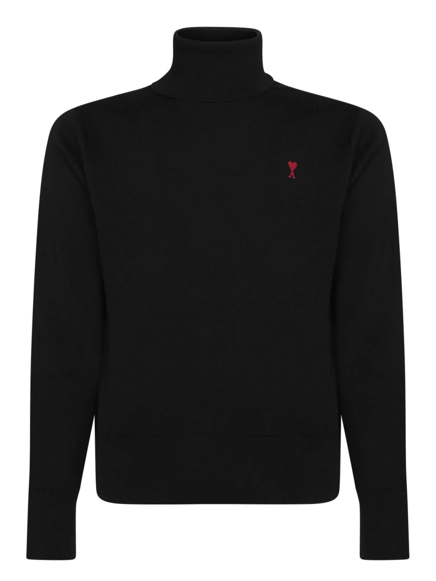 An elegant black sweater with a clean and classic cut from AMI PARIS. Featuring a soft turtleneck and a refined contrast embroidered logo, this piece is perfect for a sophisticated yet comfortable look.