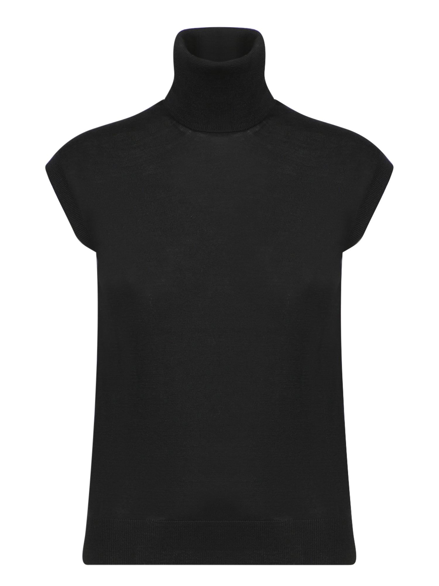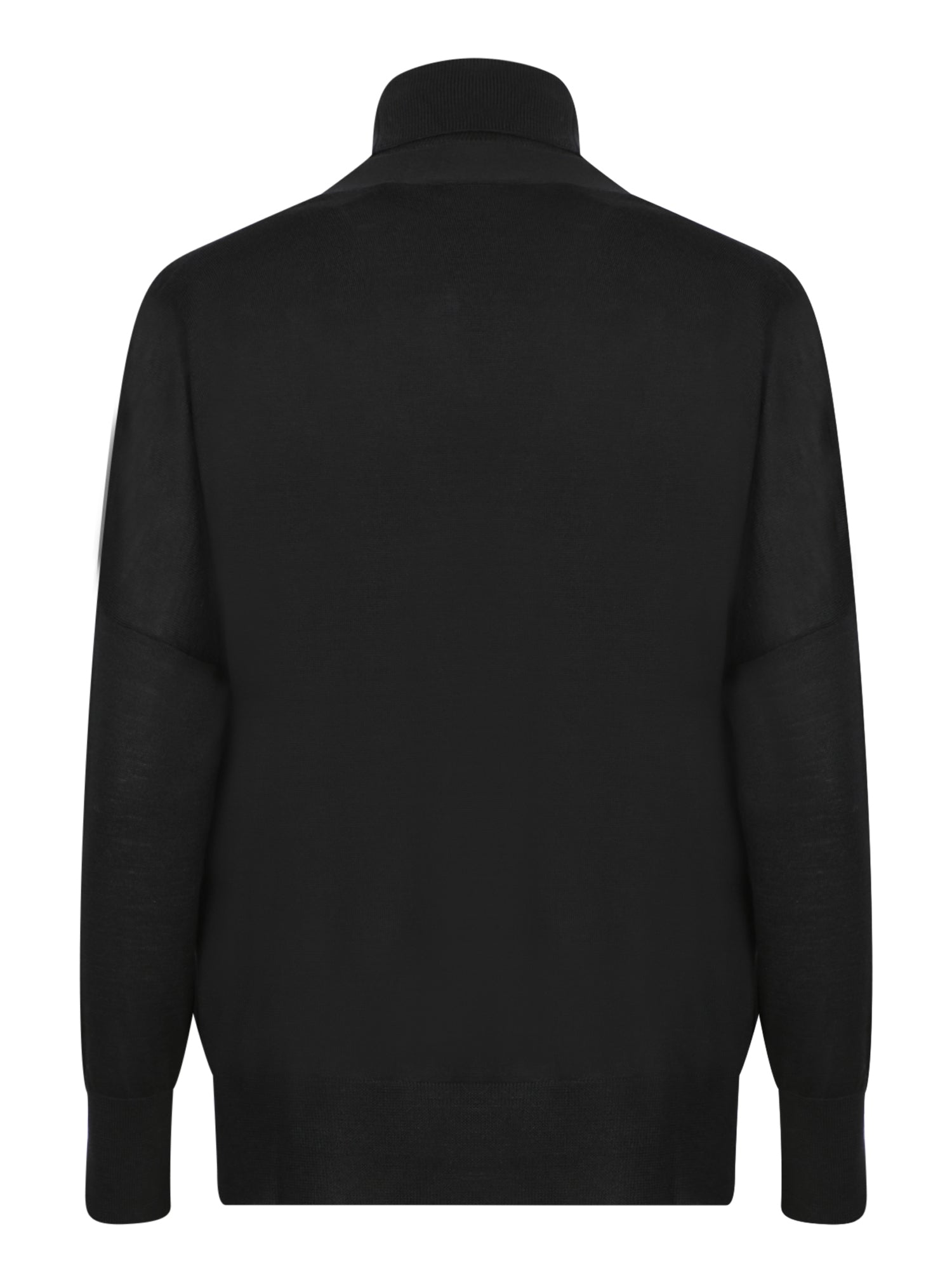 This black twin set from Blanca Vita blends elegance and comfort. Featuring a knitted turtleneck and a button-closure cardigan, it is perfect for a sophisticated and versatile look.