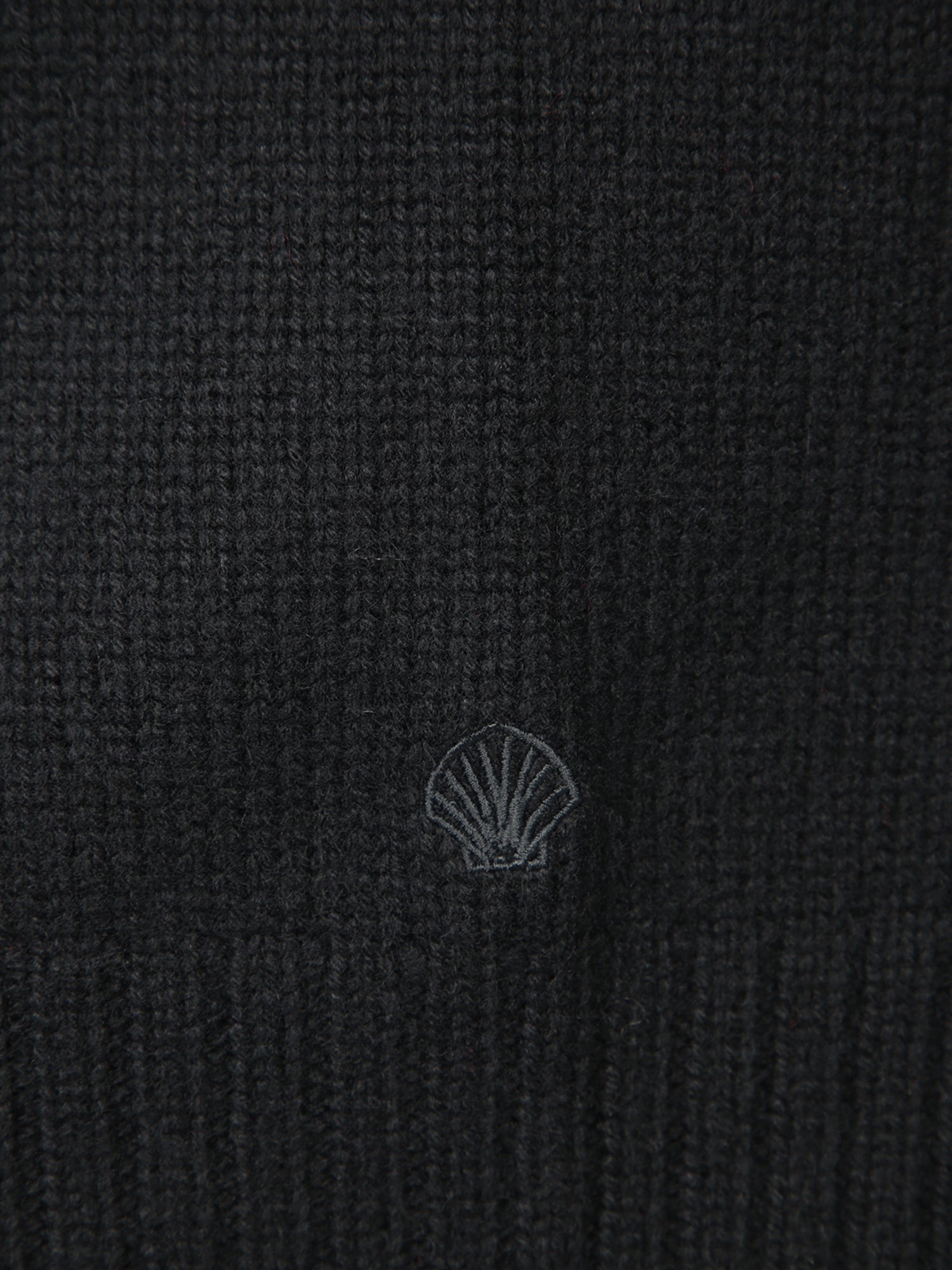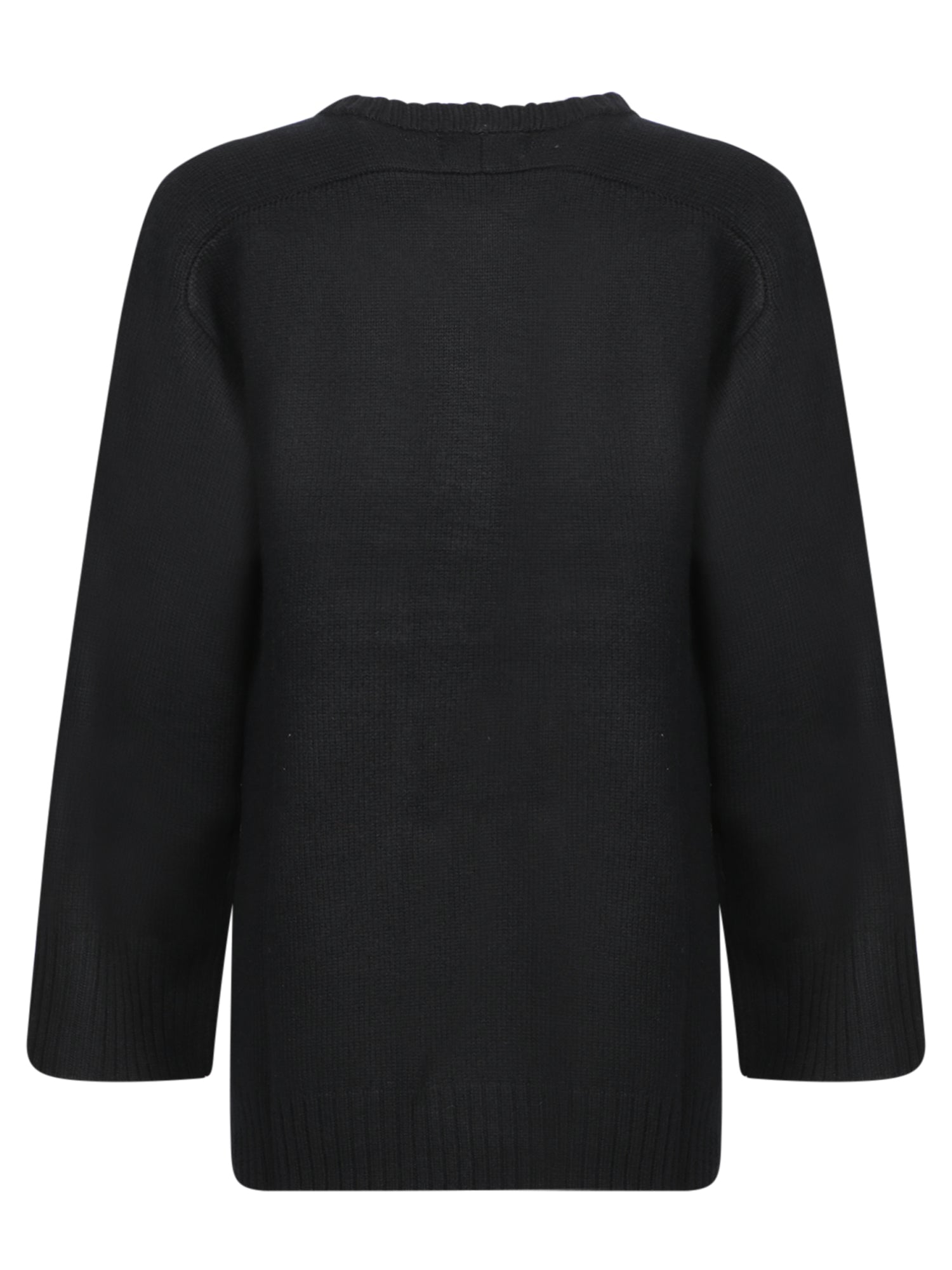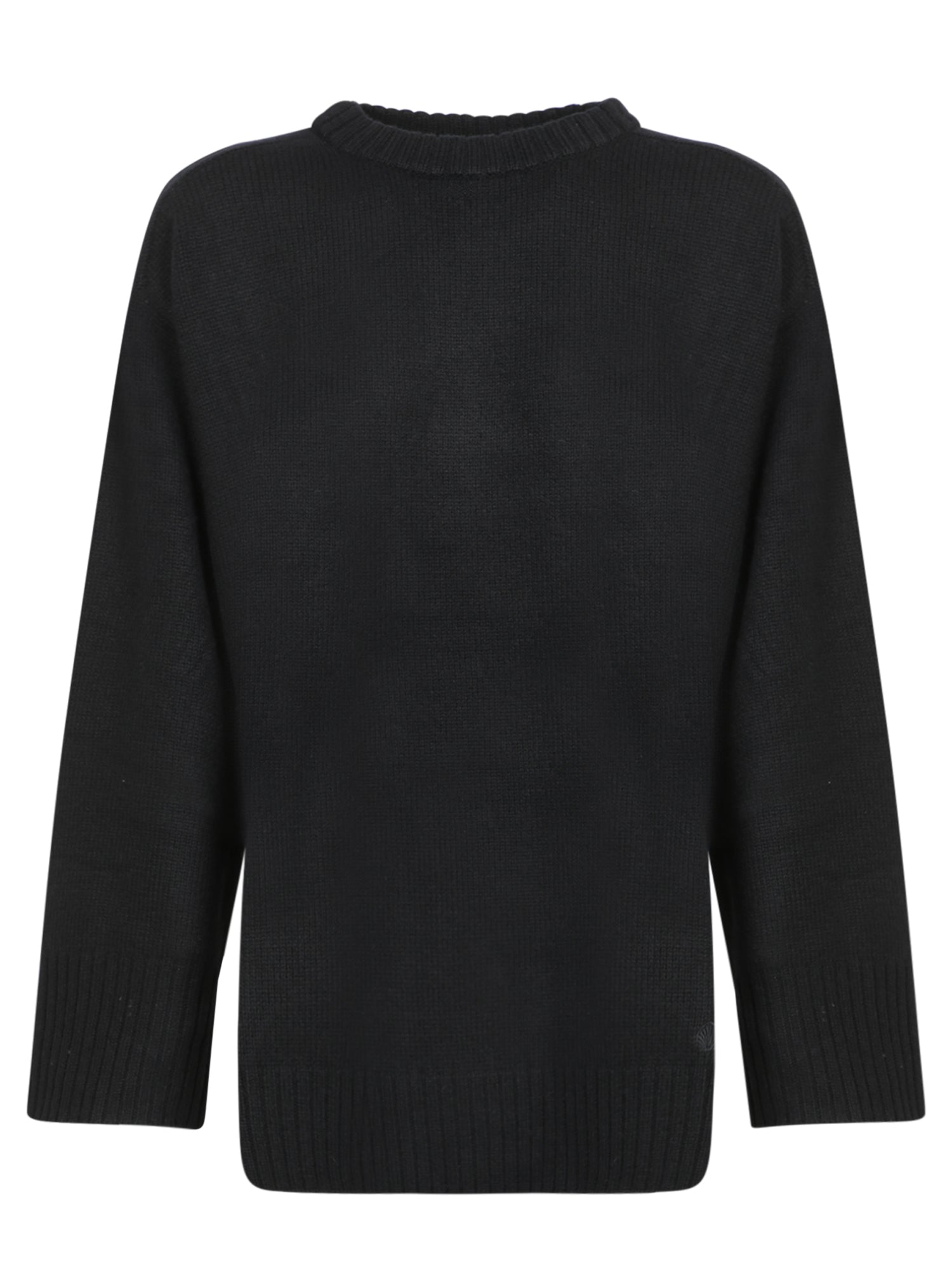 Long-sleeve sweater with a relaxed fit. Made from a blend of wool and cashmere. Solid black color. Ribbed trim.