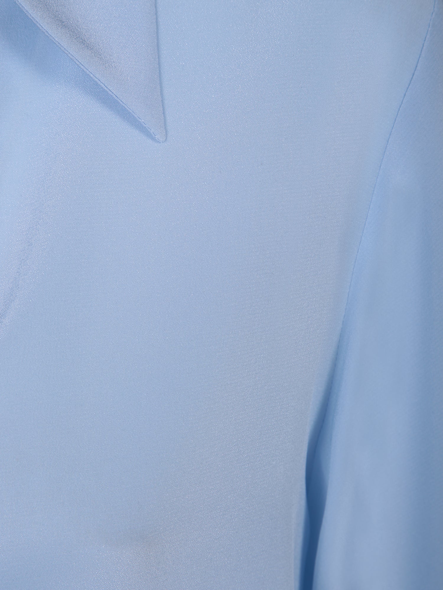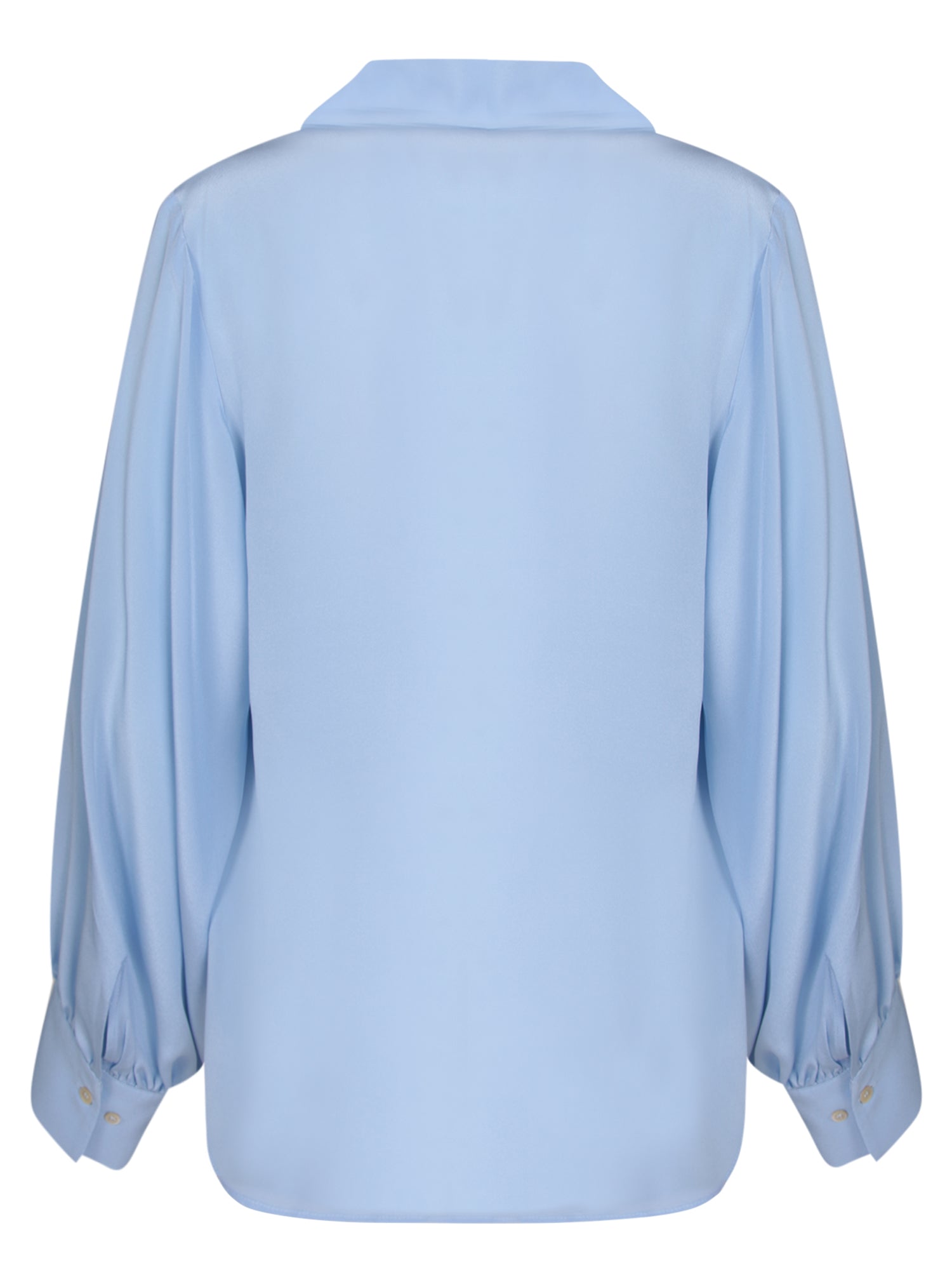 The Blanca Vita Silk Blend Blouse embodies modern elegance with a touch of sophistication, featuring a smooth light blue fabric and delicate detailing.