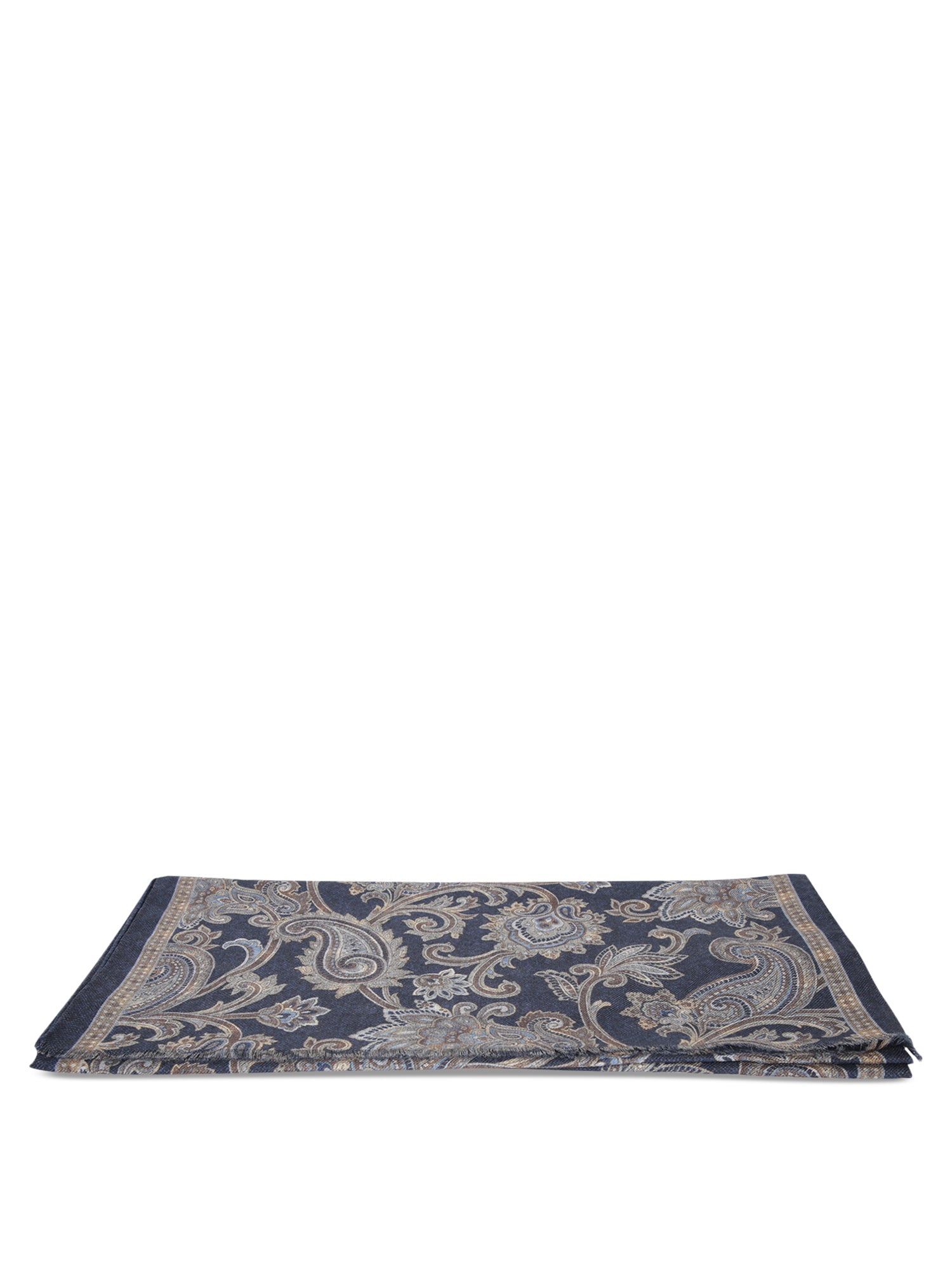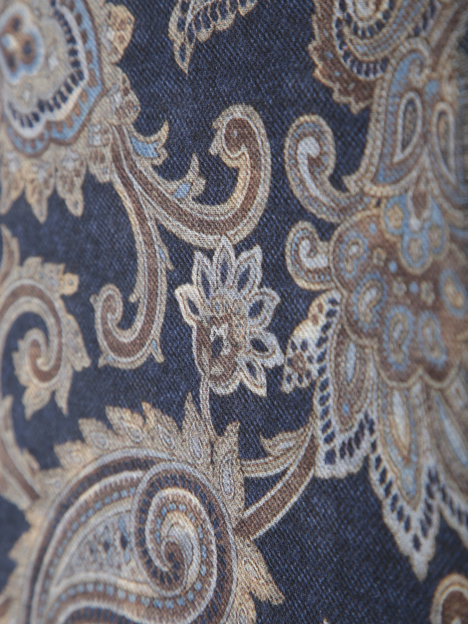 Pure wool scarf with paisley print. Dimensions: 45x180 cm. Fringed edges.