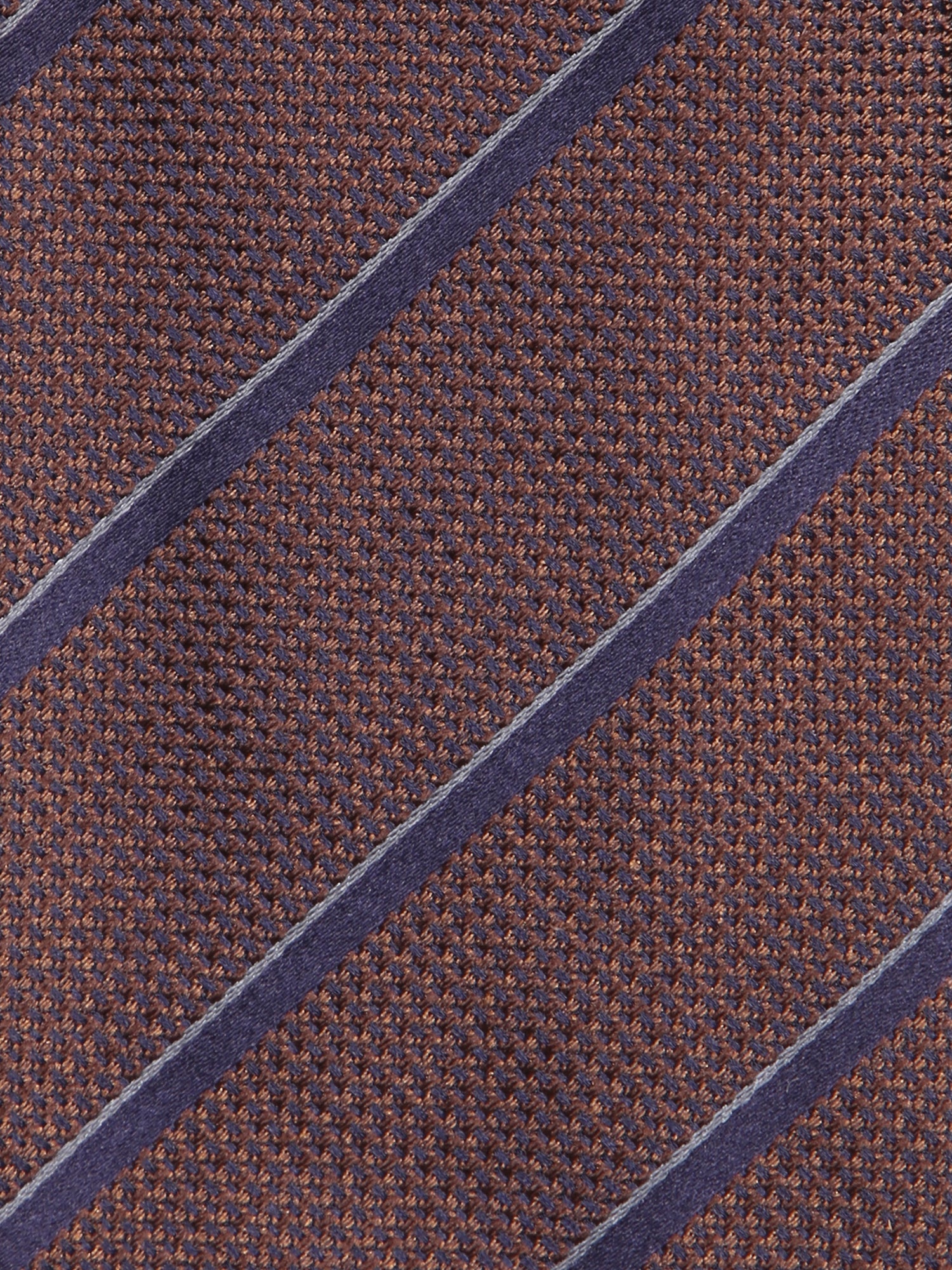 Silk tie with regimental pattern. Glossy finish and fine texture.