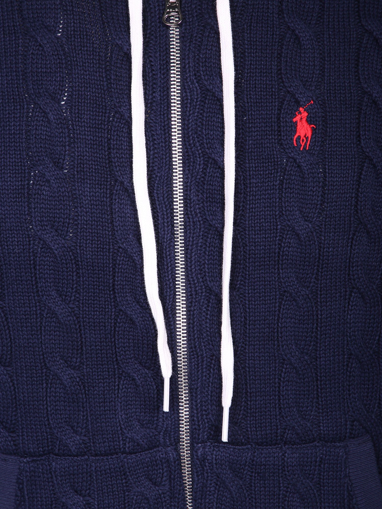 Full-zip hoodie with cable knit fabric. Embroidered logo detail on the chest.