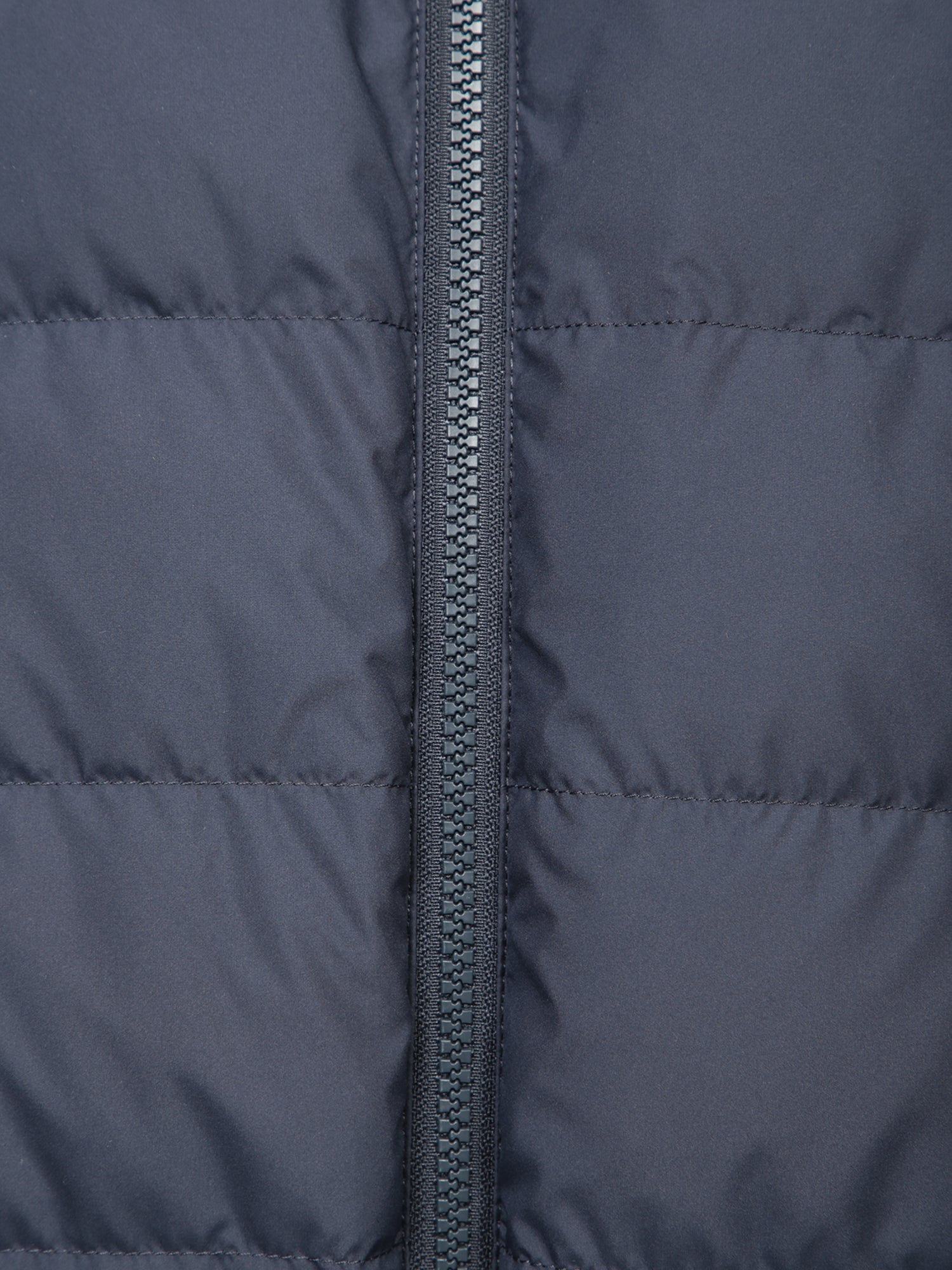 Front zip closure, ribbed high collar, knitted cuffs and hem. Side zip pockets.