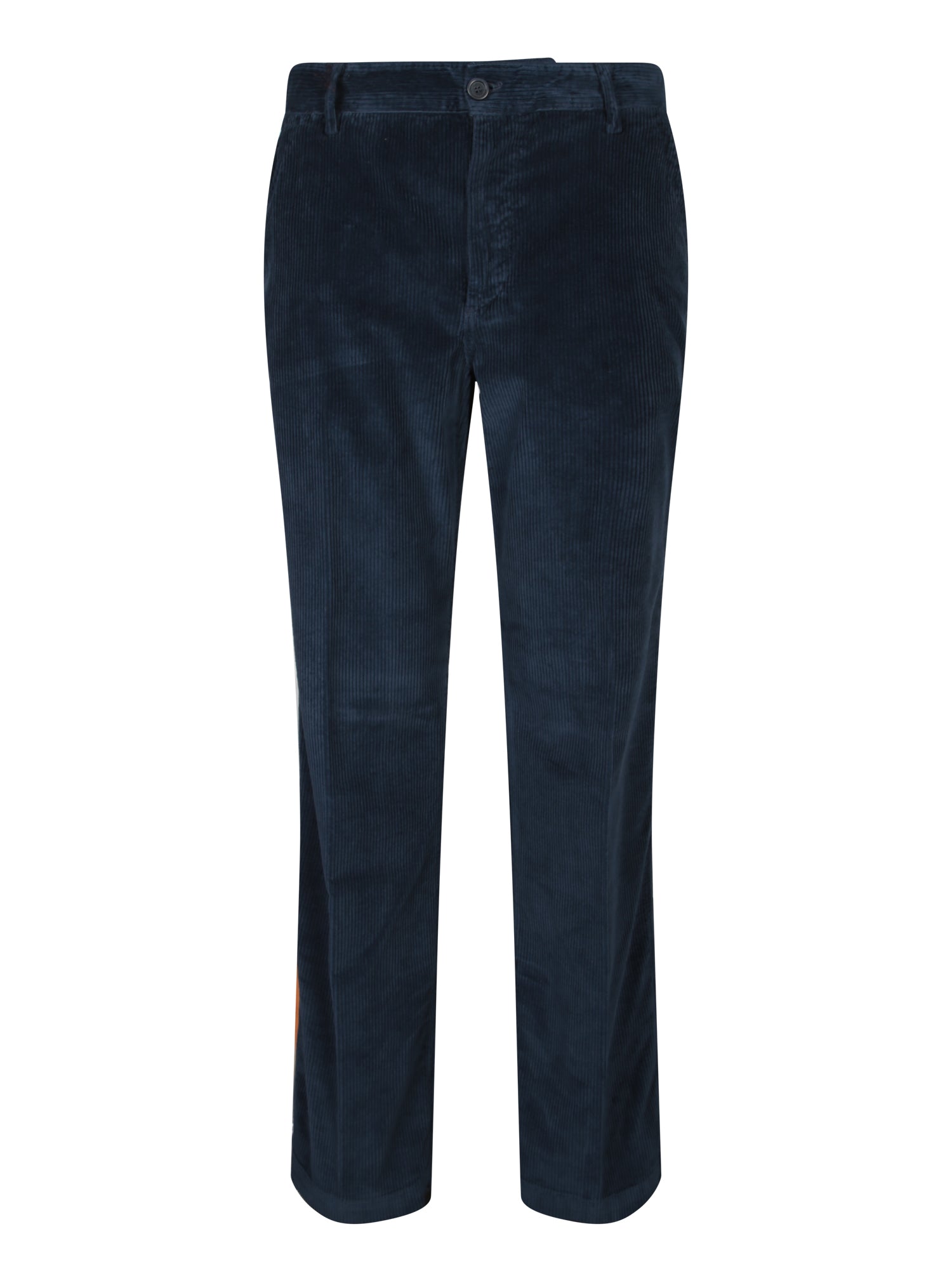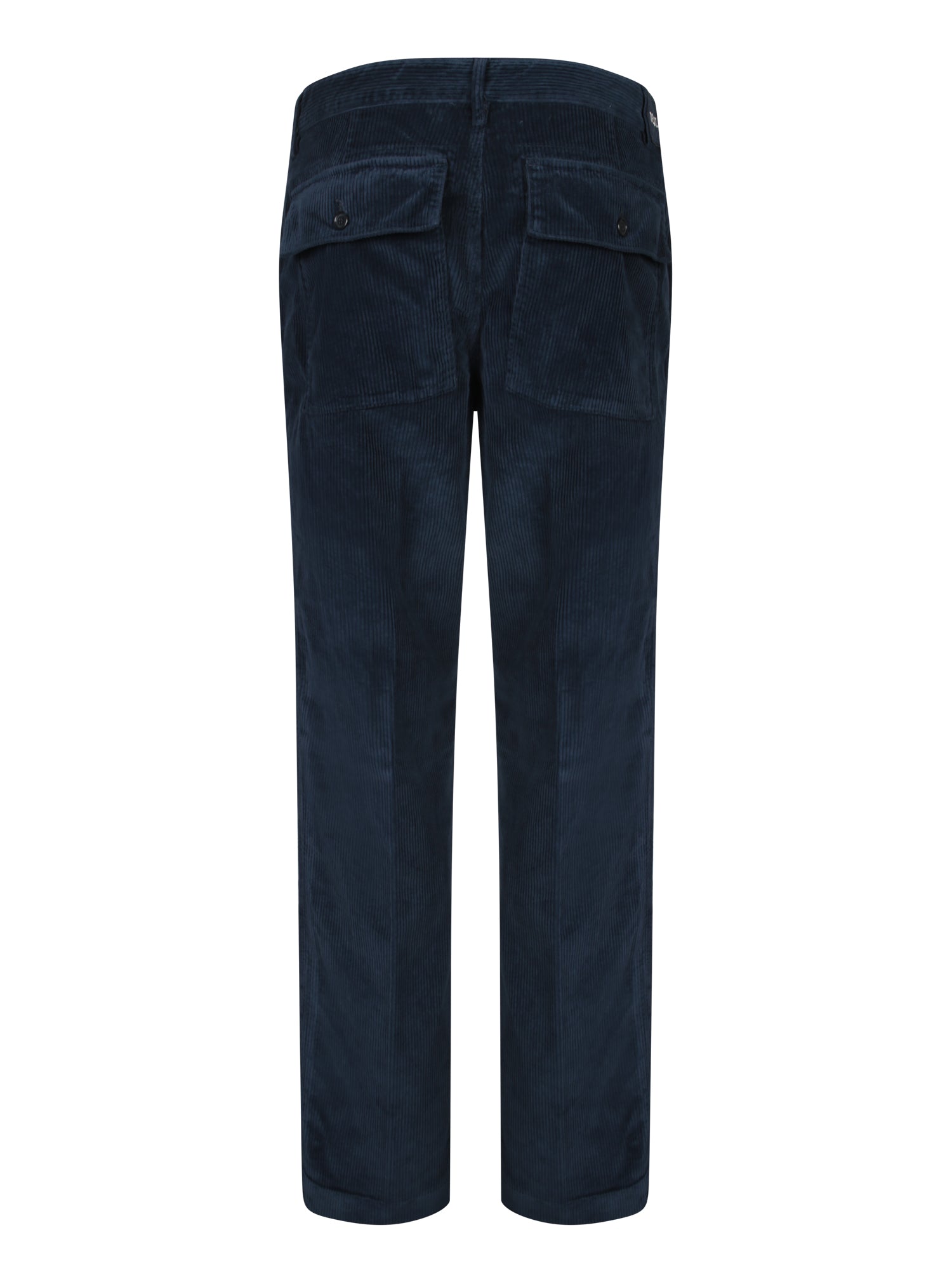 Straight leg model. Front closure with zipper and button. Side and back pockets.
