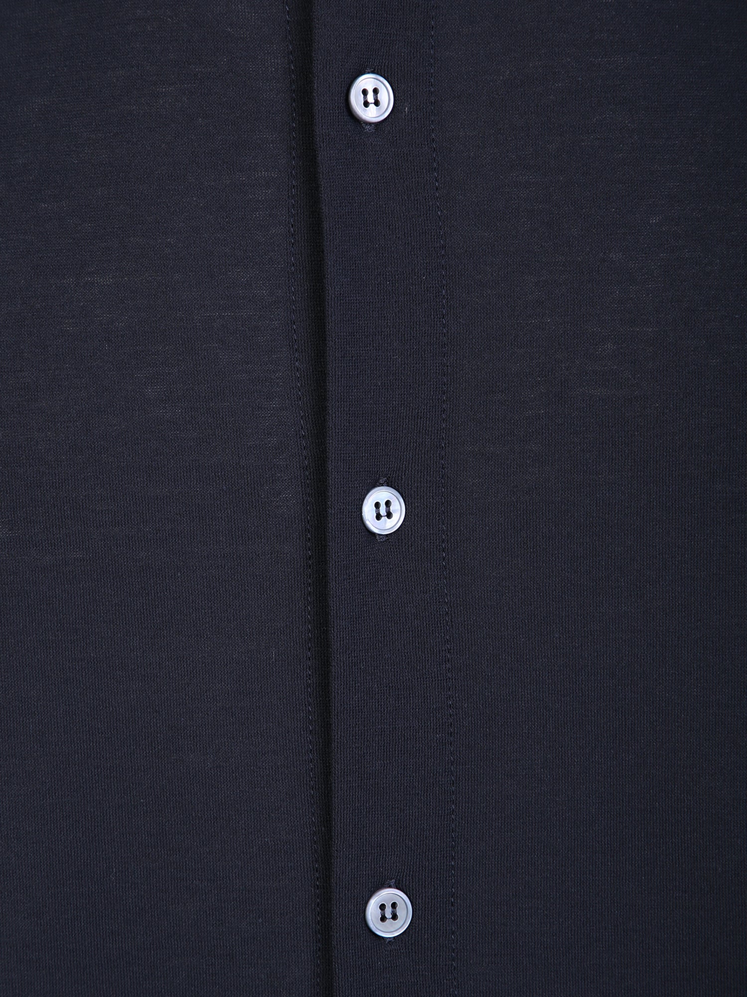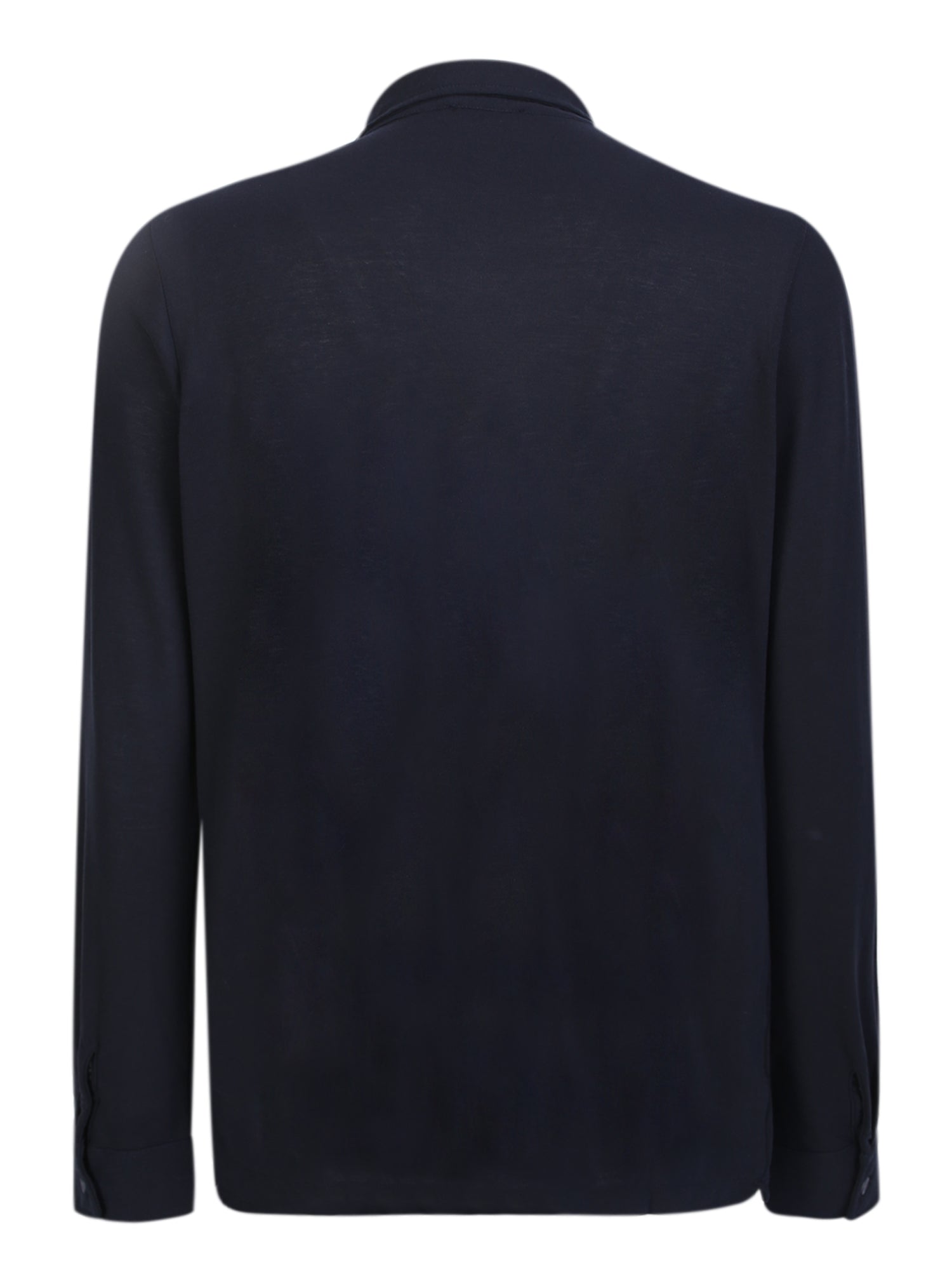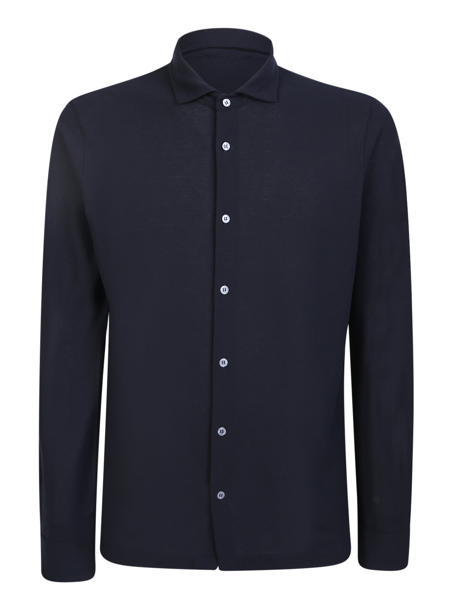 Classic collar. Front button fastening. Long sleeves. Tone on tone stitching. Straight hem. Color: blue