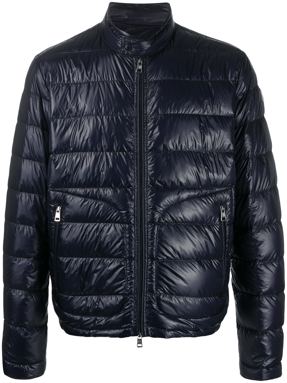 Shiny technical fabric. Double zip closure. Zip pockets.