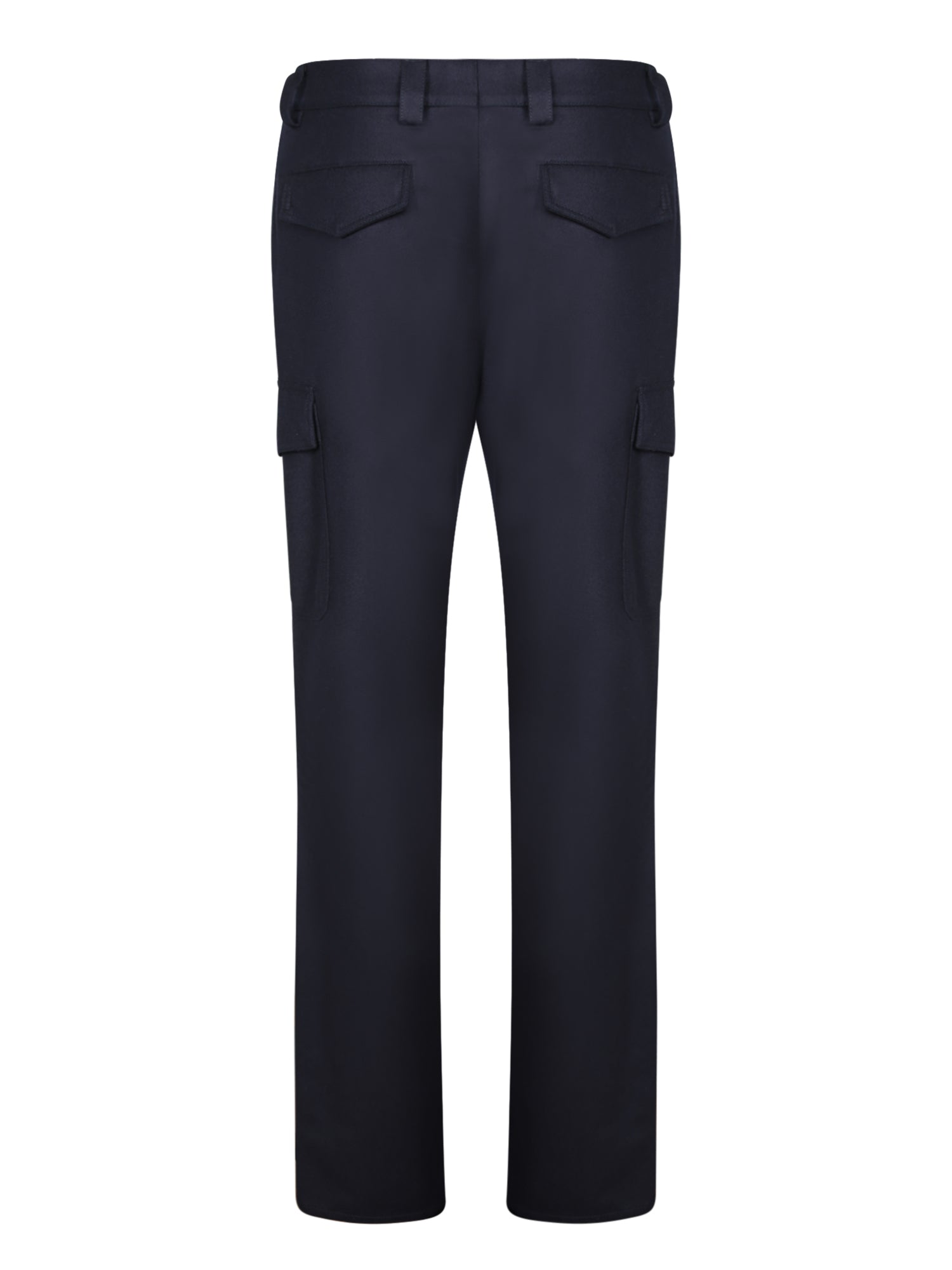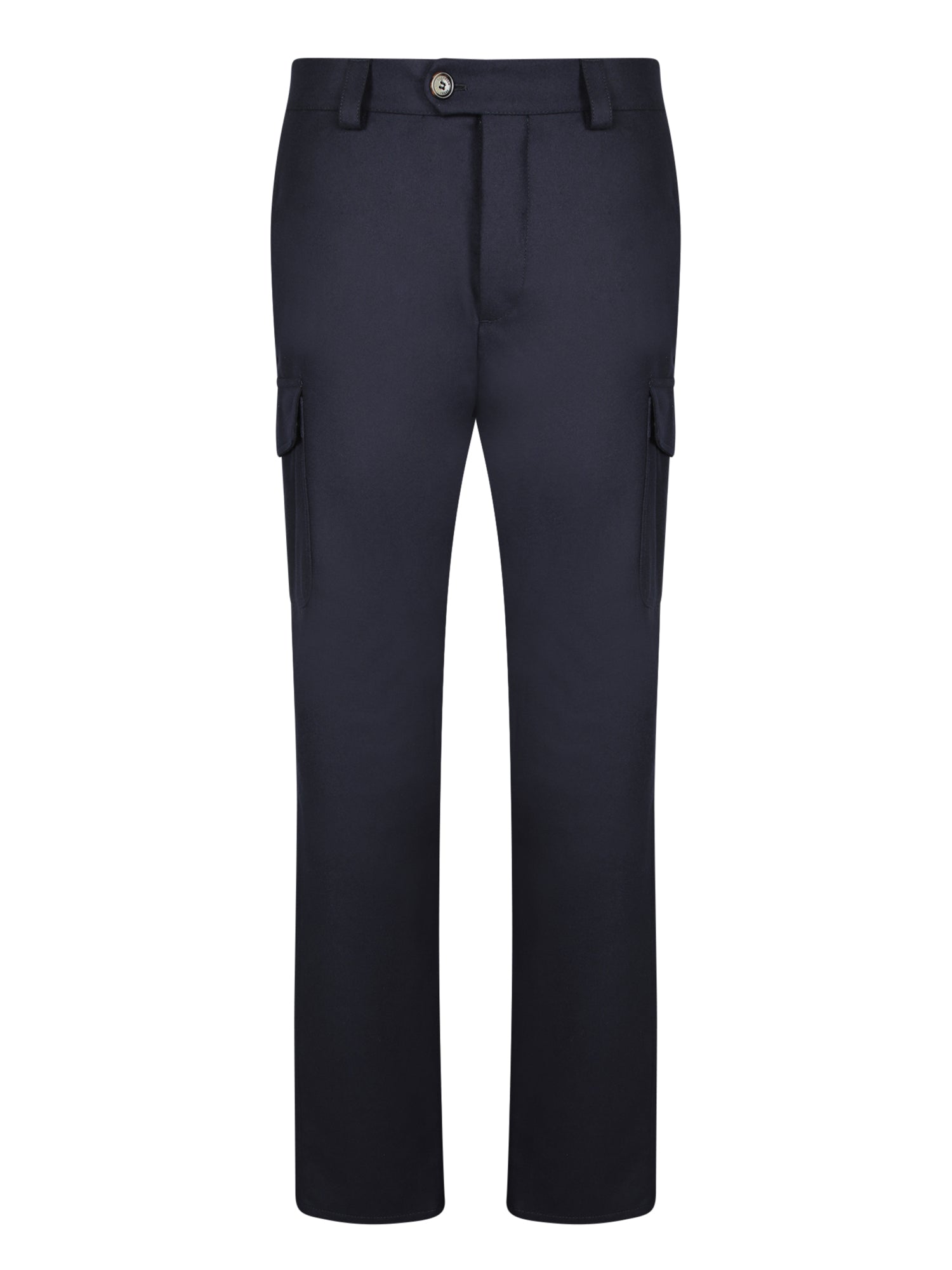 Flannel pants with cargo pockets. Front zip and button closure. Belt loops.