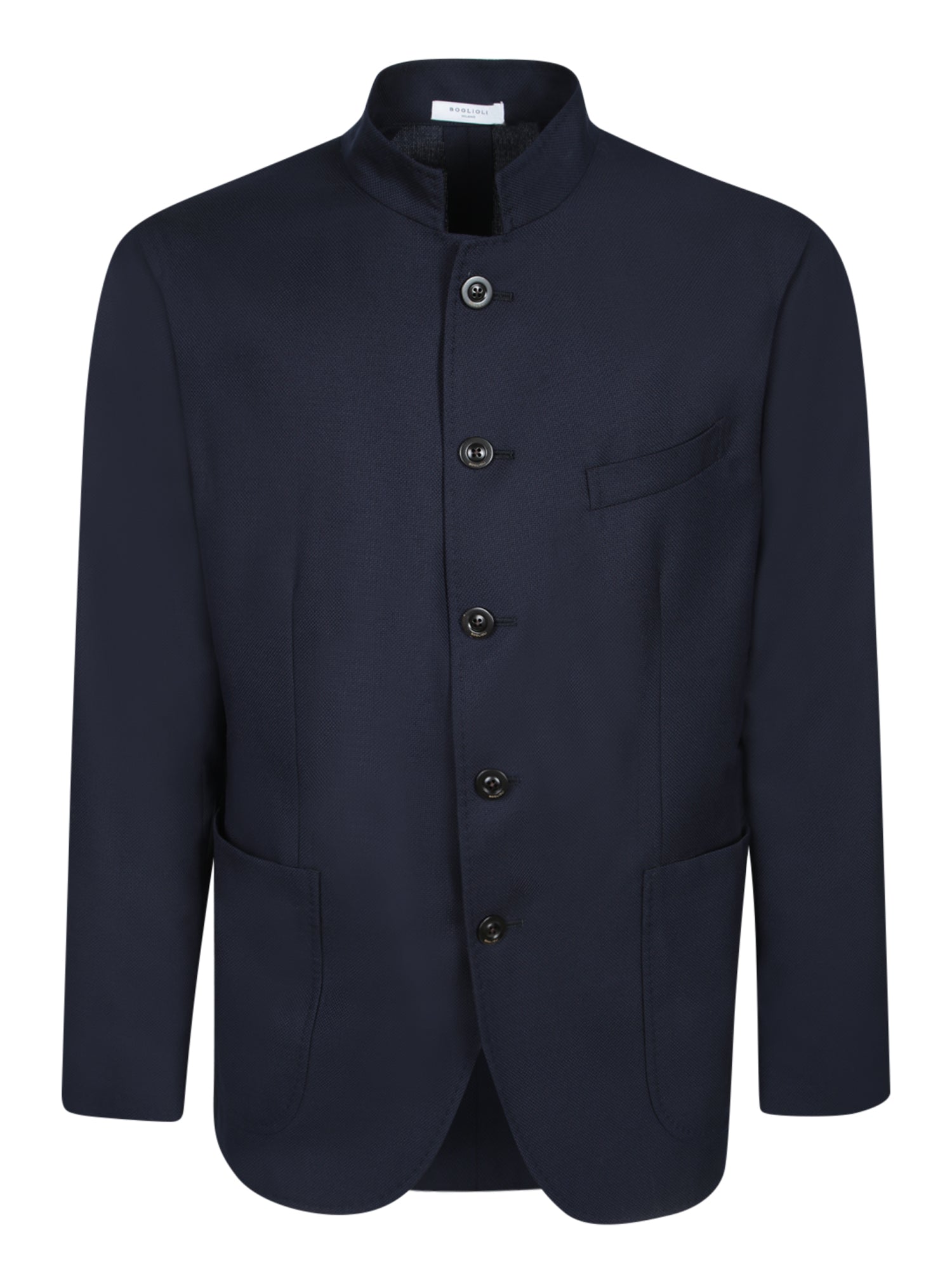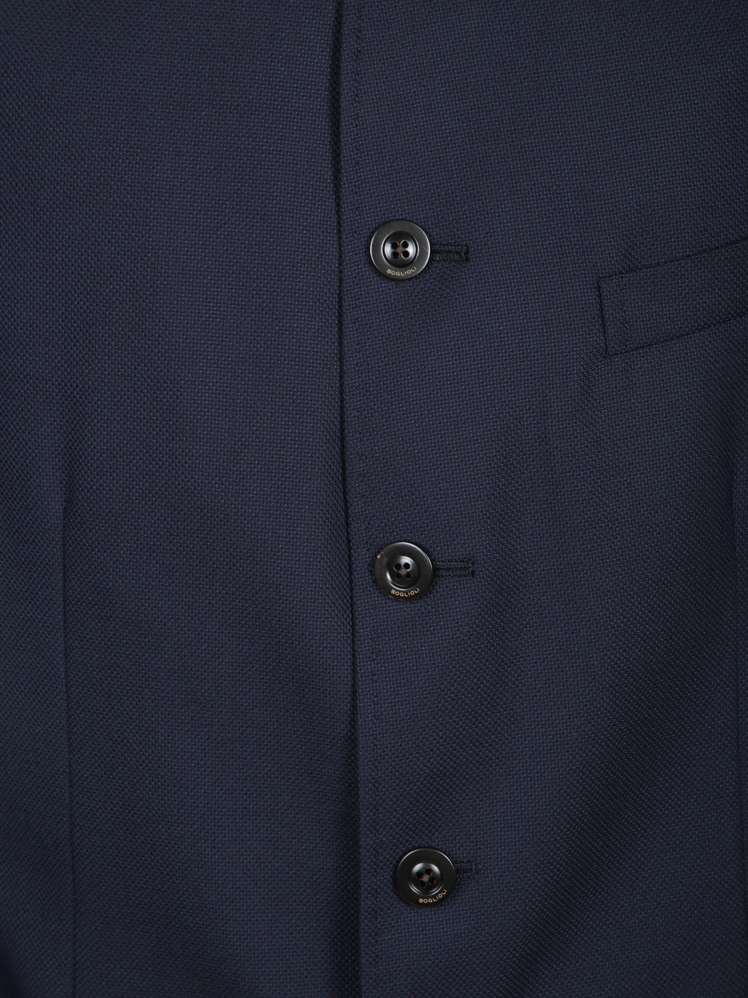 This deep blue Boglioli jacket blends the prestige of hopsack fabric with a modern and versatile design. Featuring a tailored mandarin collar and an impeccable silhouette, it is ideal for formal occasions and business meetings.