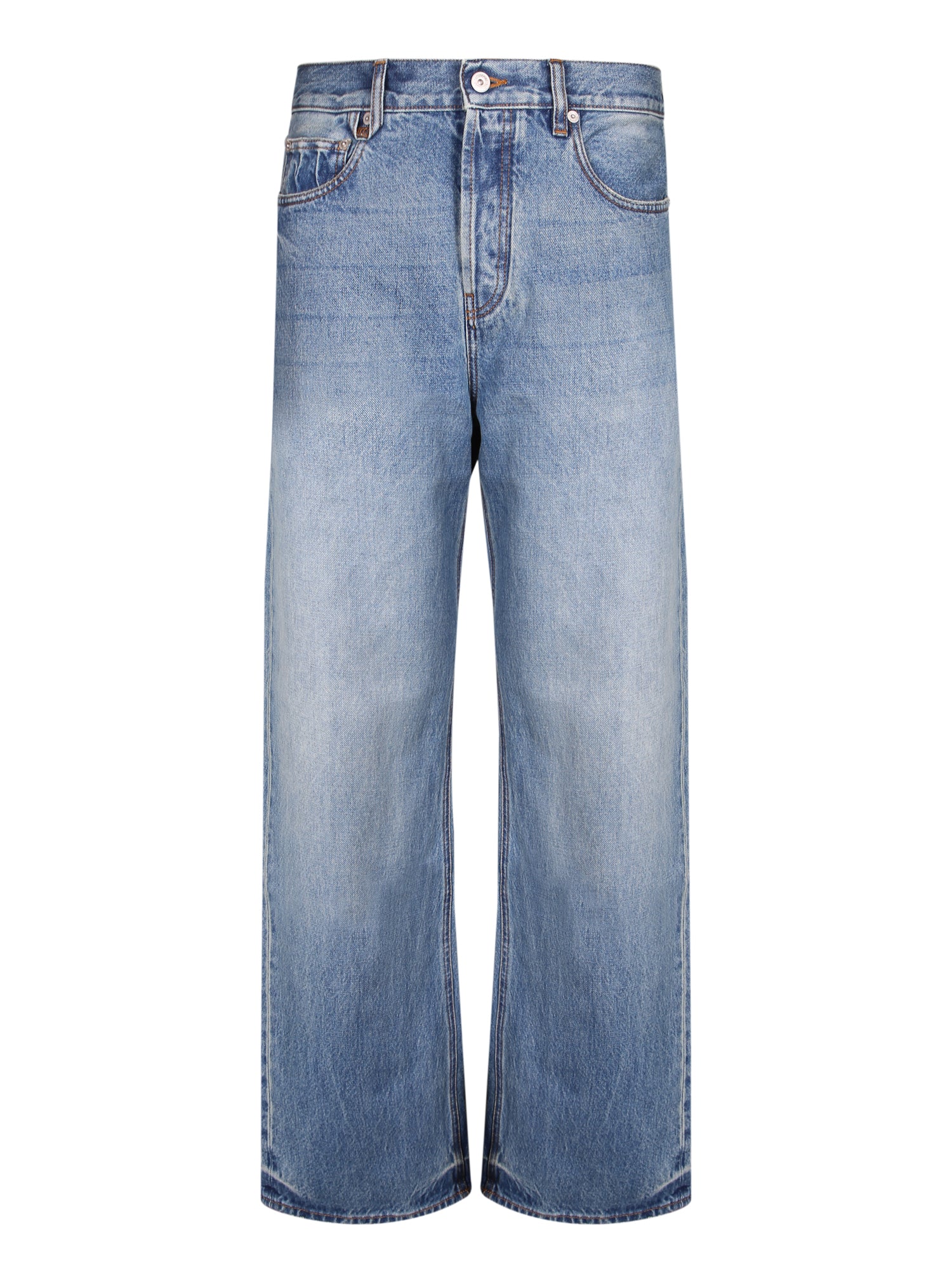Made from high-quality denim. Straight cut and mid-rise. Faded details on the legs.