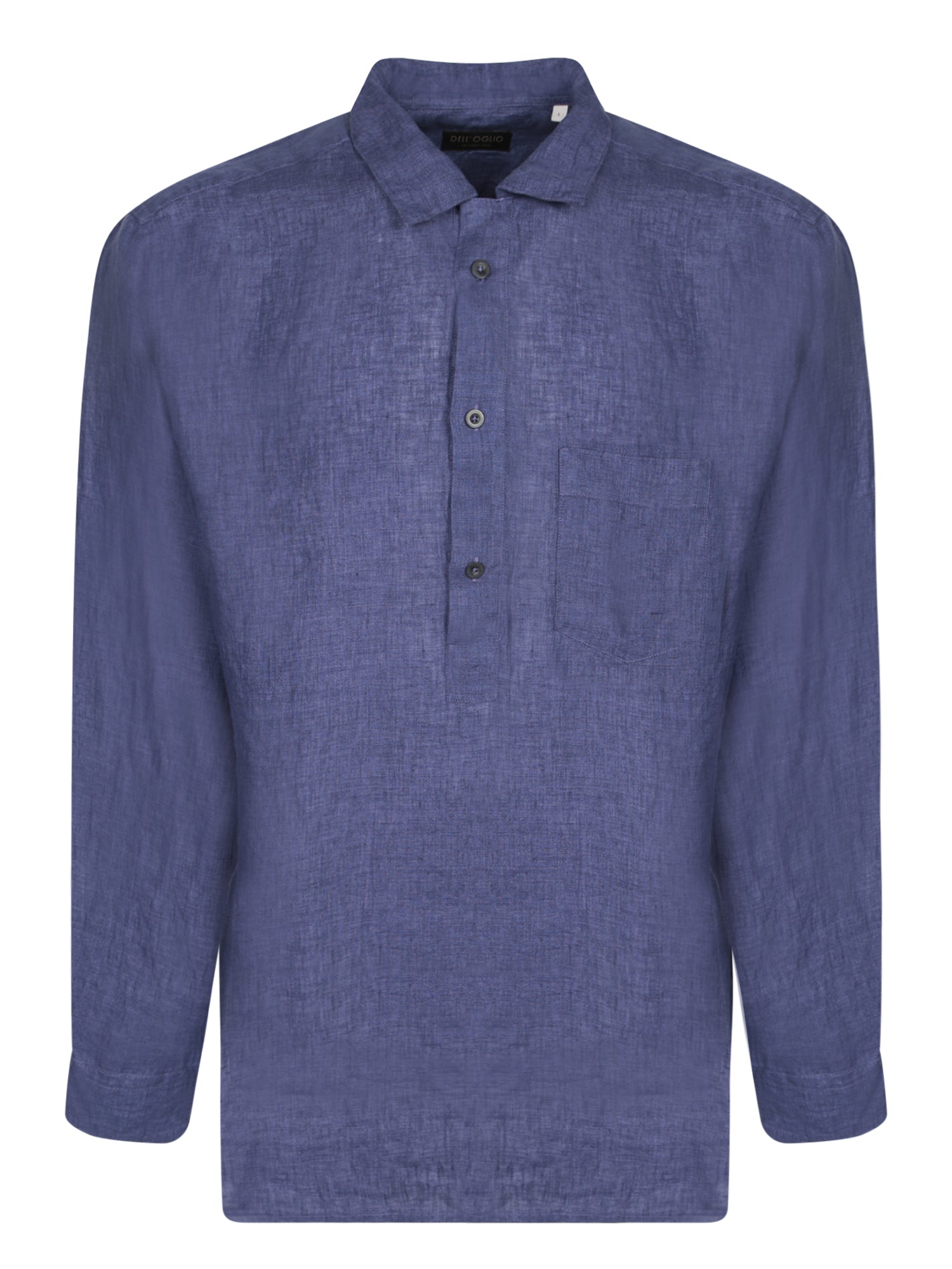 This elegant blue linen shirt is enhanced with a refined button closure, ideal for a polished yet casual look. The chest pocket adds a functional touch, while the classic collar completes the profile stylishly.