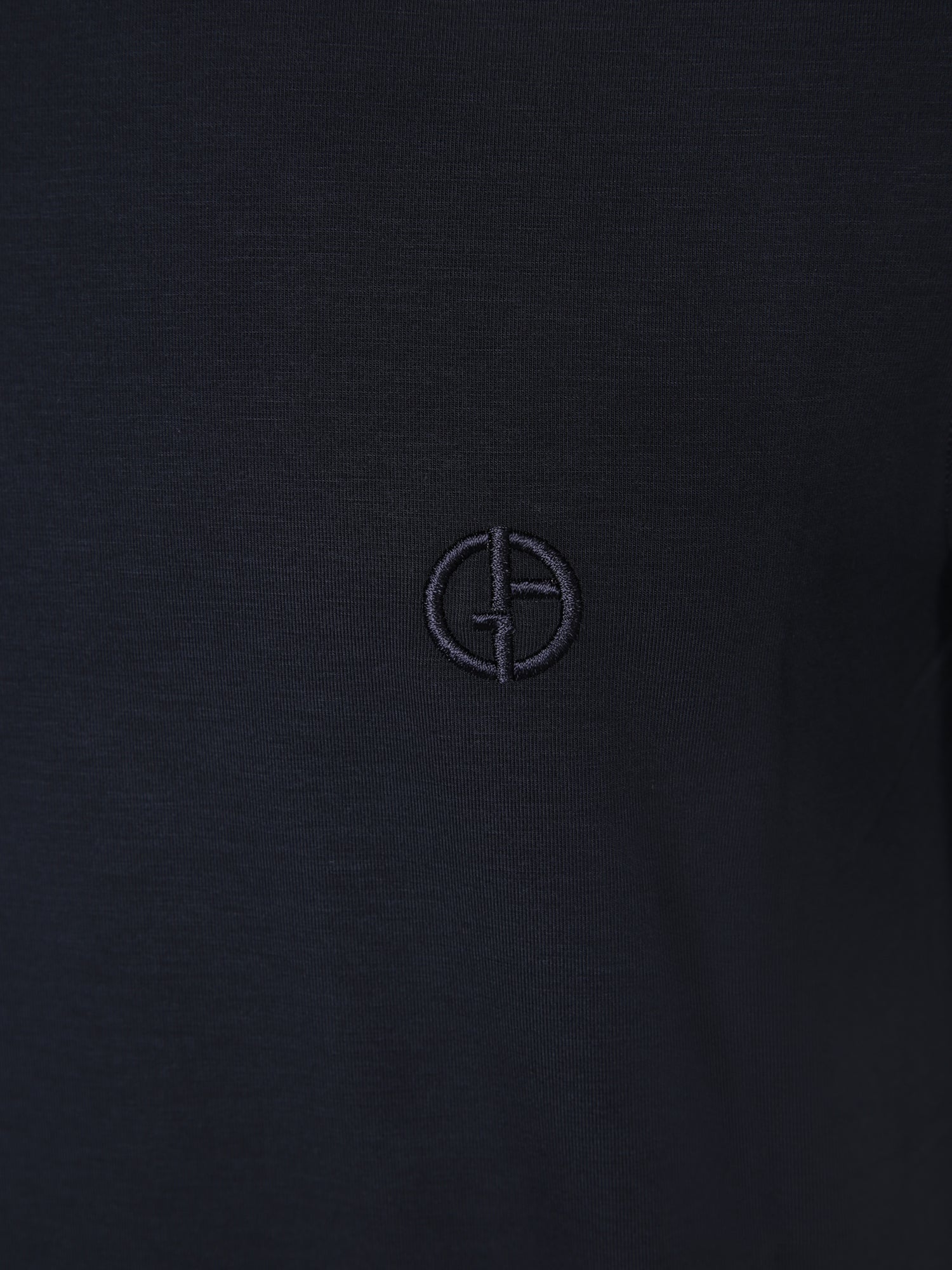 Short sleeve t-shirt with Giorgio Armani logo on the front. Knitted crew neck.