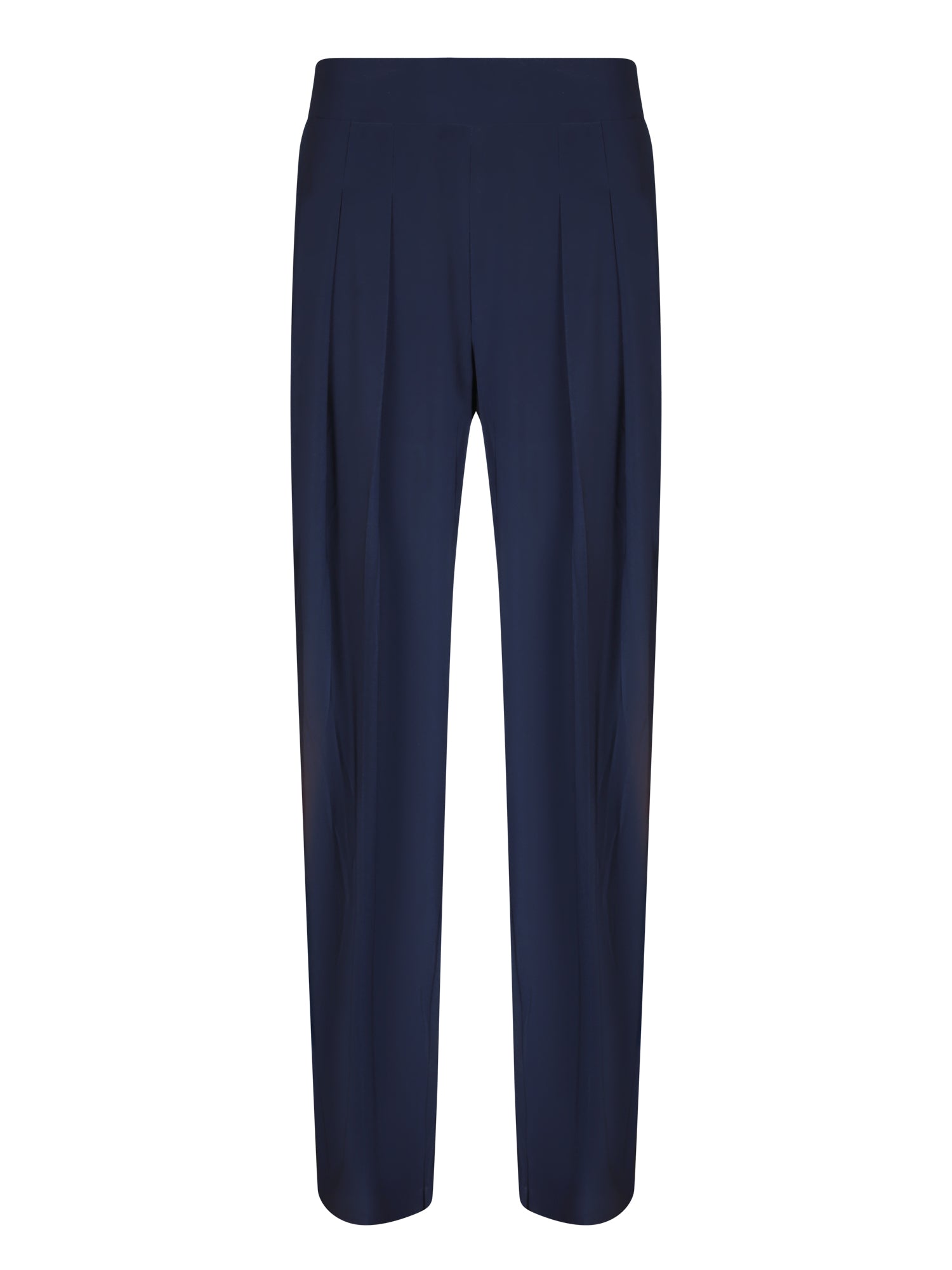 Low-rise trousers. Refined pleats. Fluid fabric.
