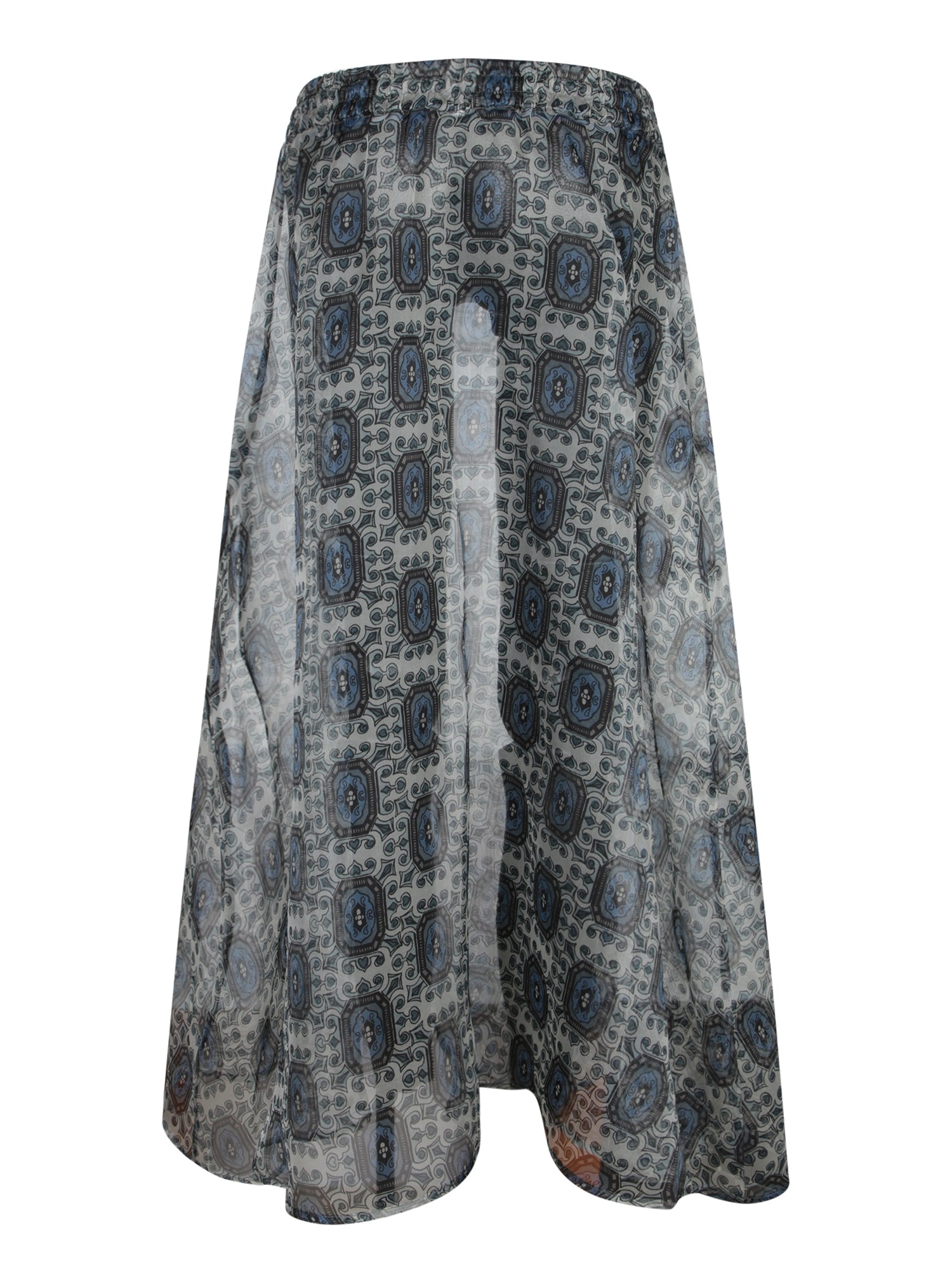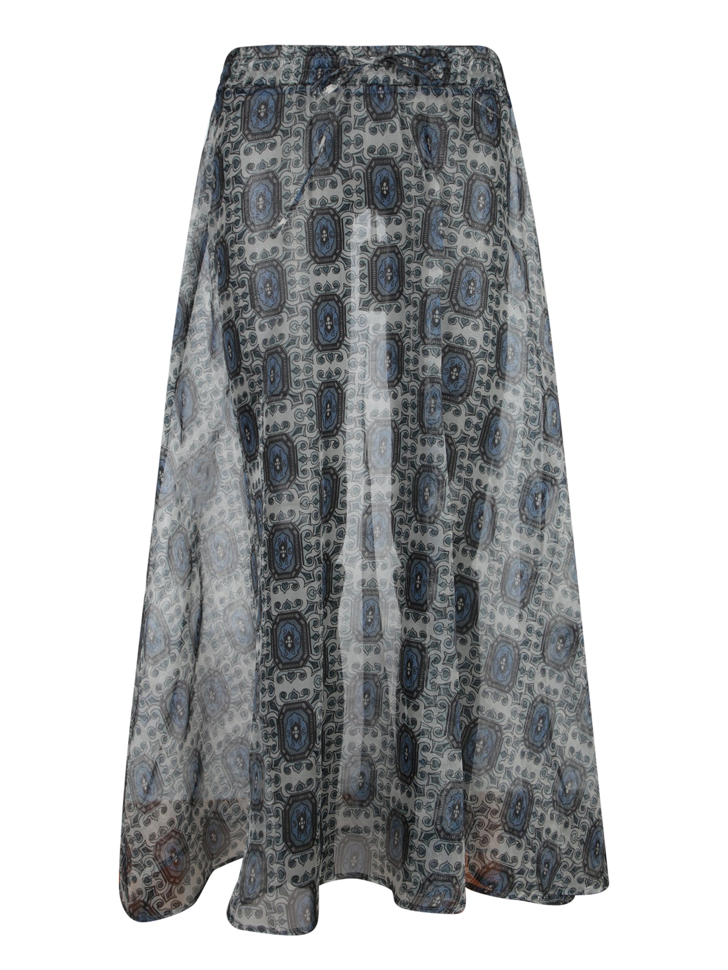 Printed organza midi skirt. Wide and fluid cut. Elastic waistband for a comfortable fit.