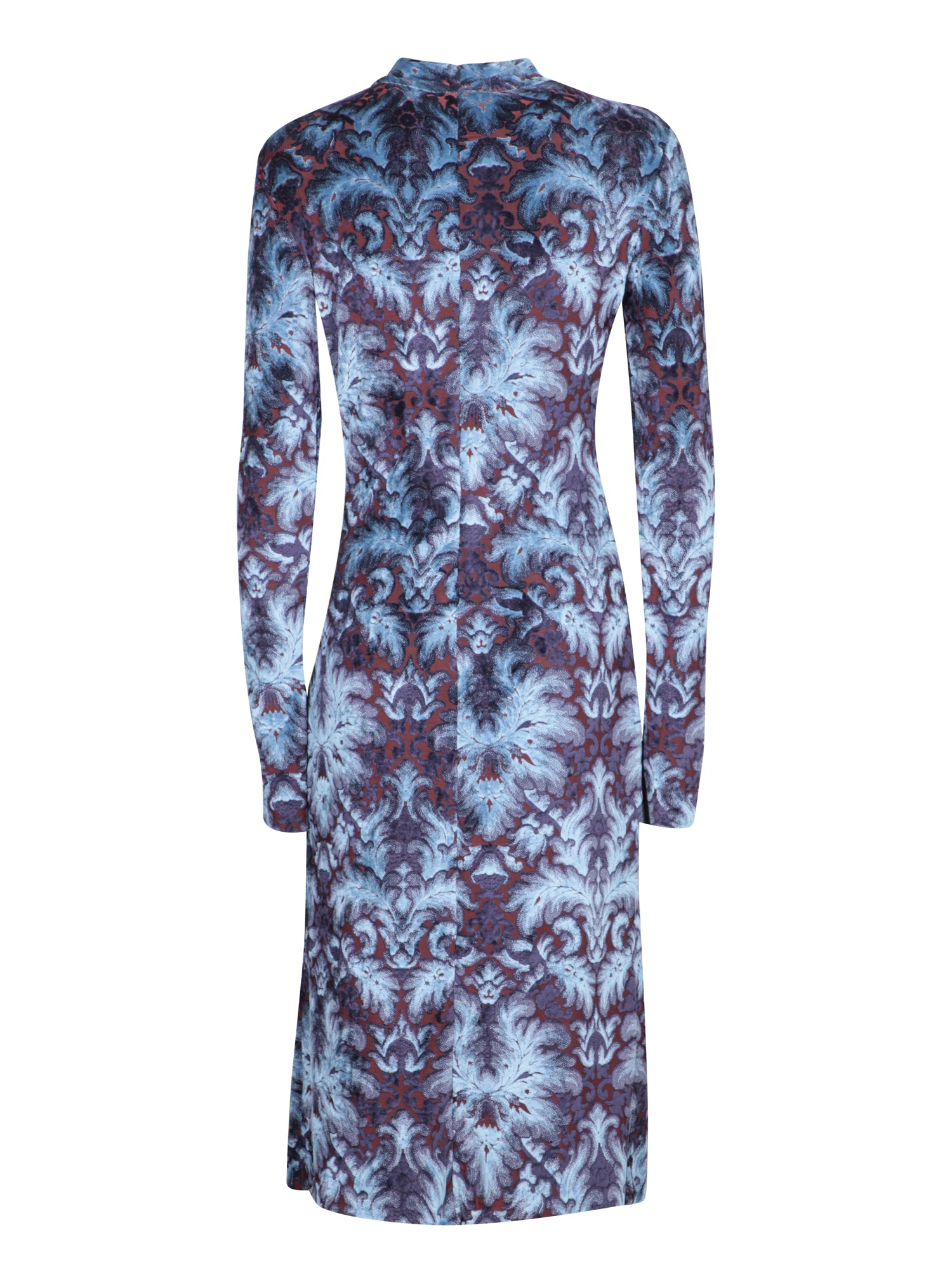 Long sleeve midi dress. Velvet fabric with paisley print. High collar.