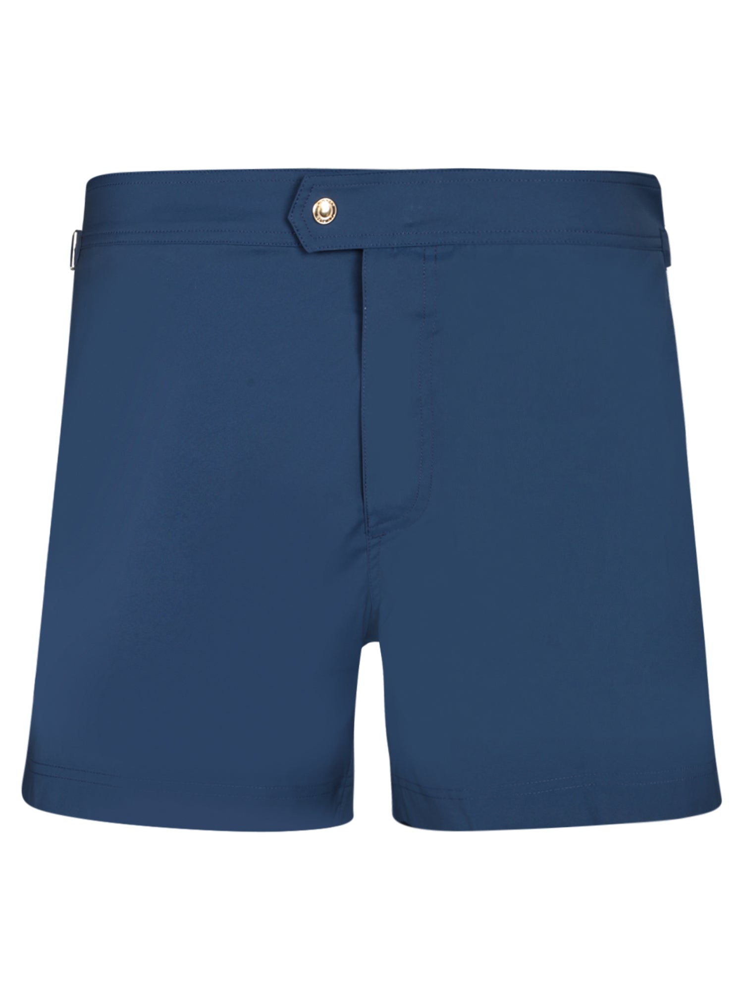 Swimming trunks made from technical fabric. Snap button closure. Contrasting piping detail.