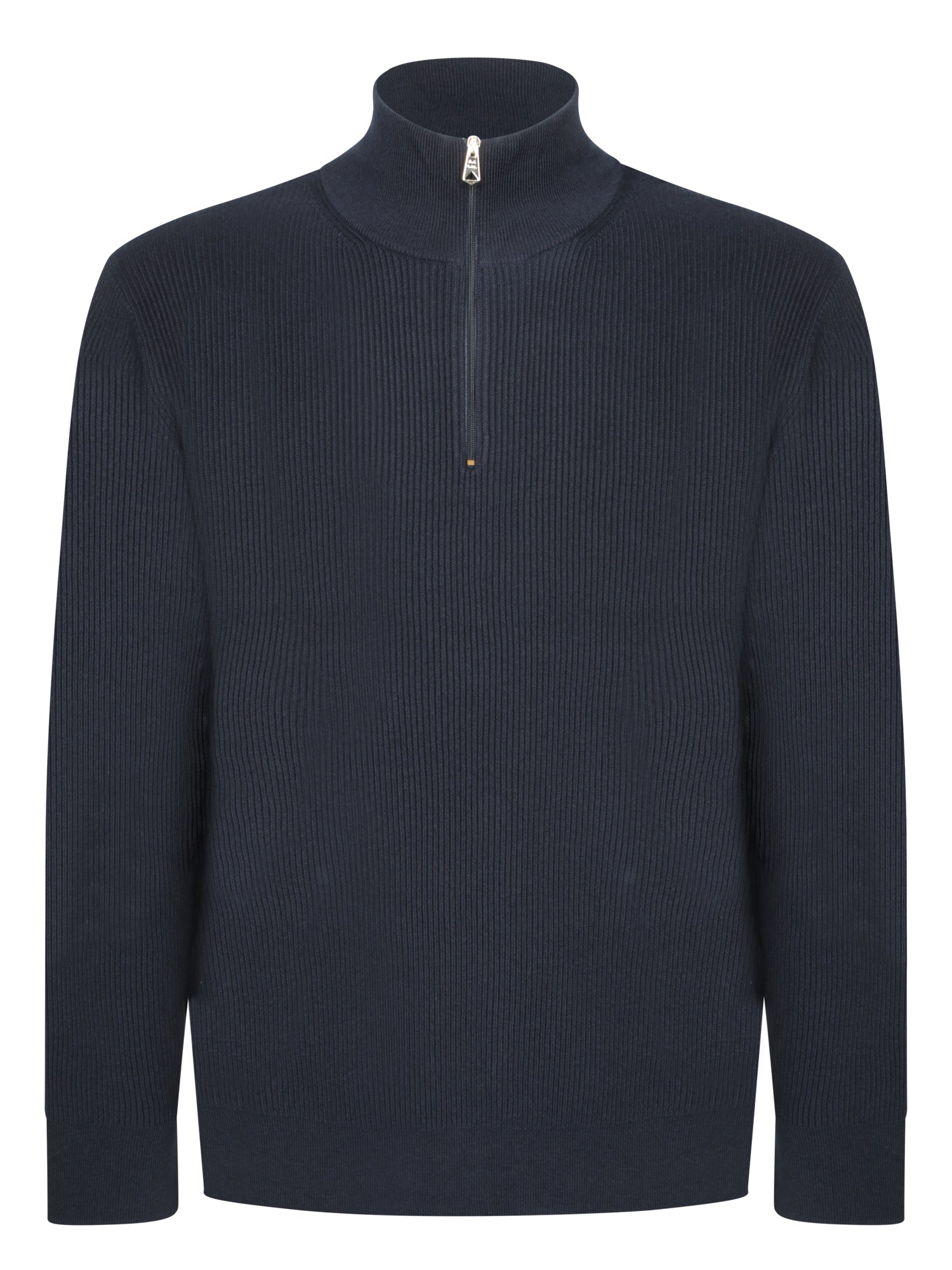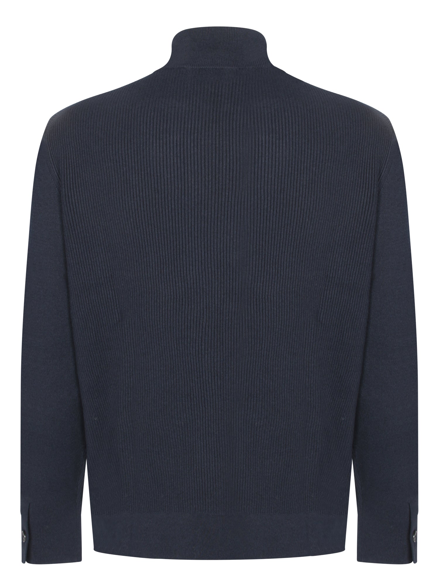 Discover understated elegance with Paul Smith's blue ribbed midzip sweater. Featuring a sophisticated high collar and convenient zip closure, this piece is perfect for a polished look that stands out.