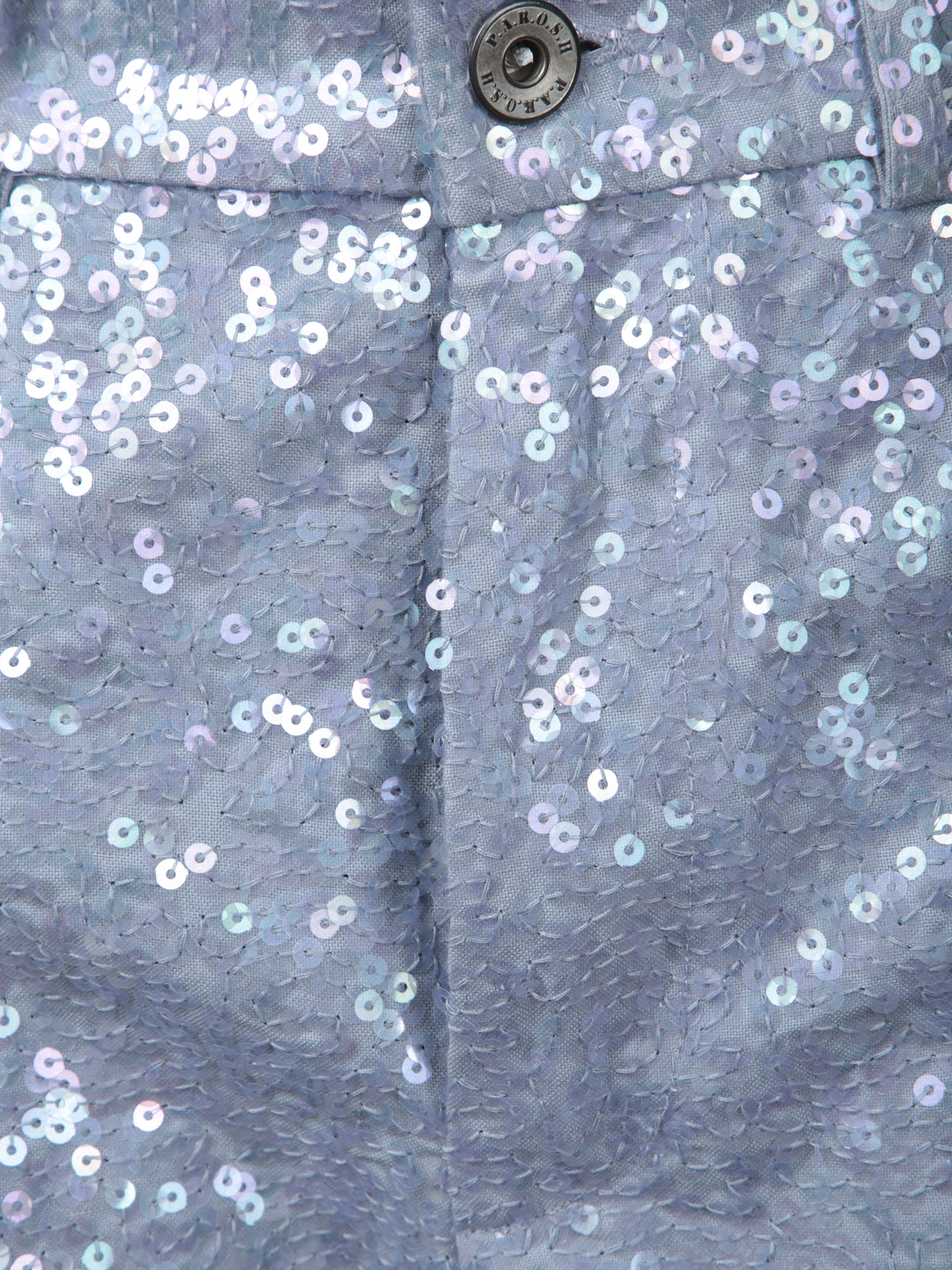 Merge glamour and comfort with PAROSH's Blue Sequined Jeans. Designed to shine, these wide-leg jeans are dotted with sparkling sequins that add a luxury touch to any outfit.
