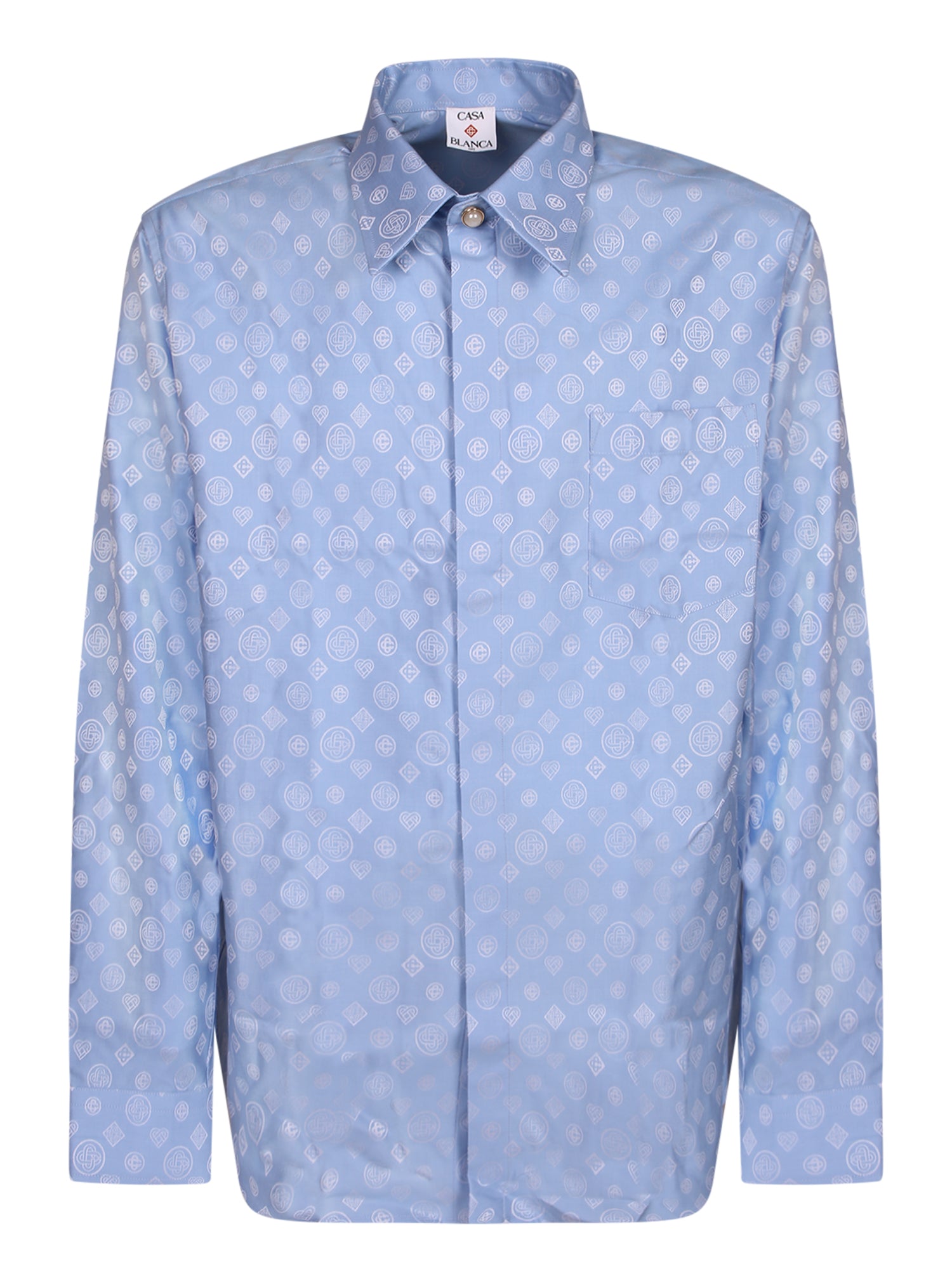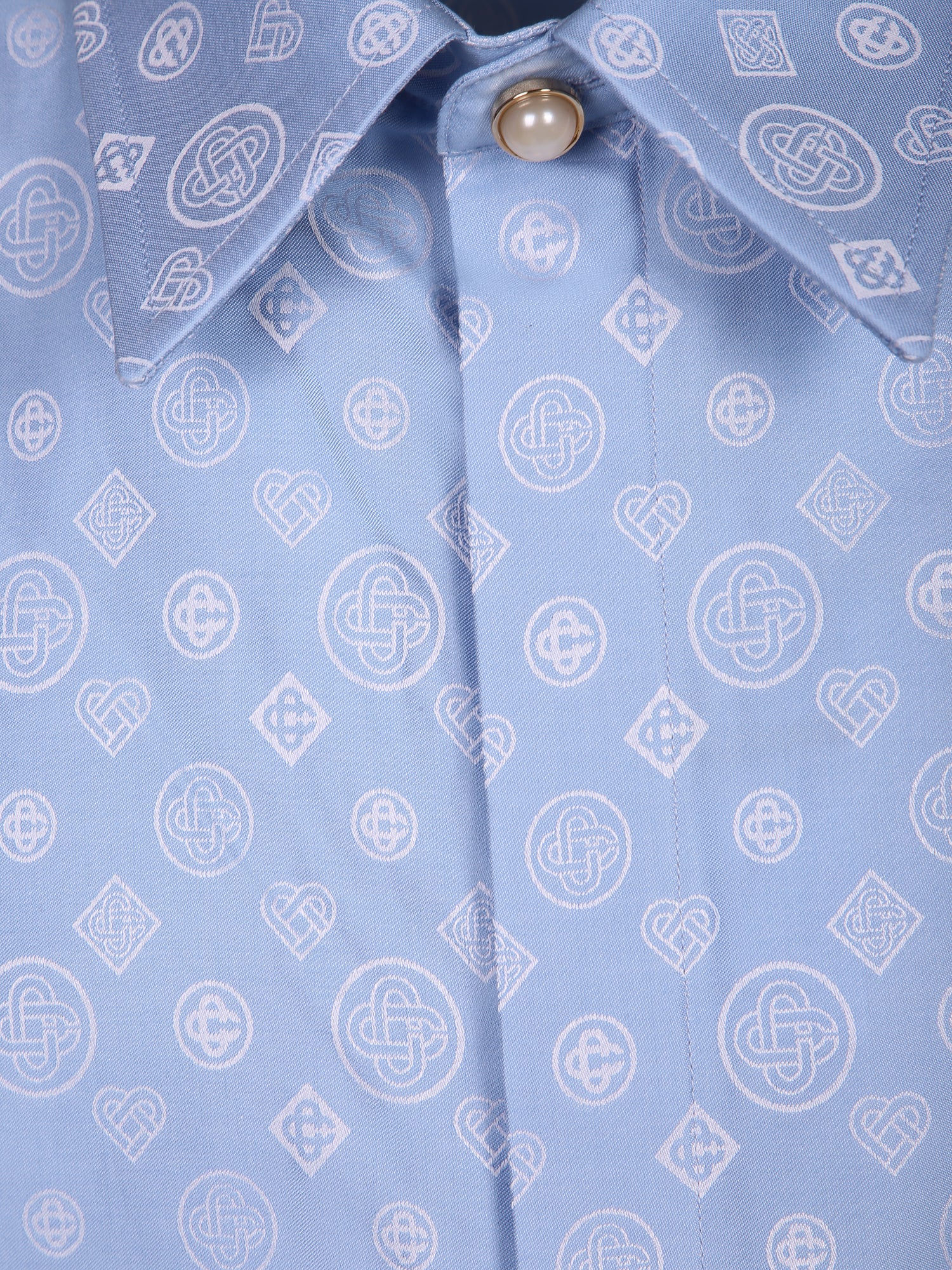 Cotton fabric. Classic collar. Hidden button closure. Monogram pattern.