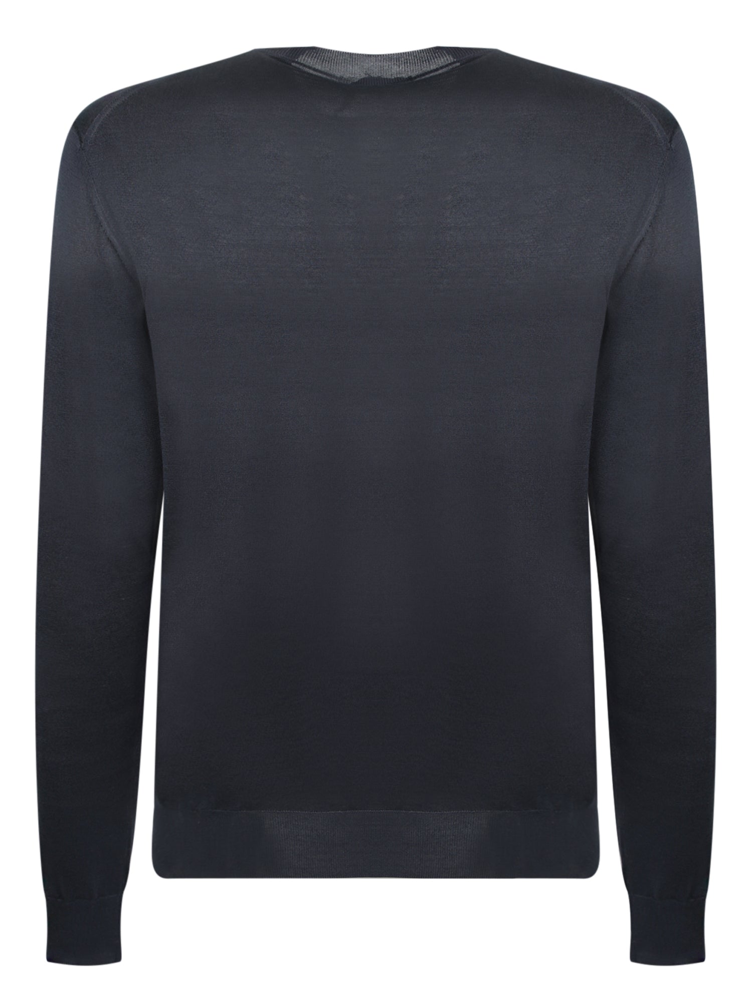 Silk crewneck sweater. Ribbed trims. Discreet logo on the cuff.
