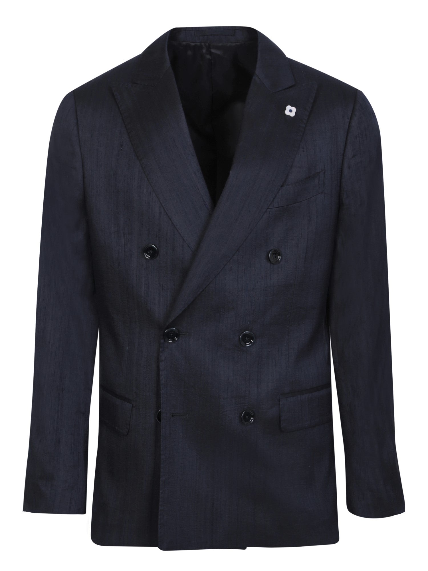 Blue silk double-breasted jacket by Lardini. Italian excellence whose vocation is for high quality