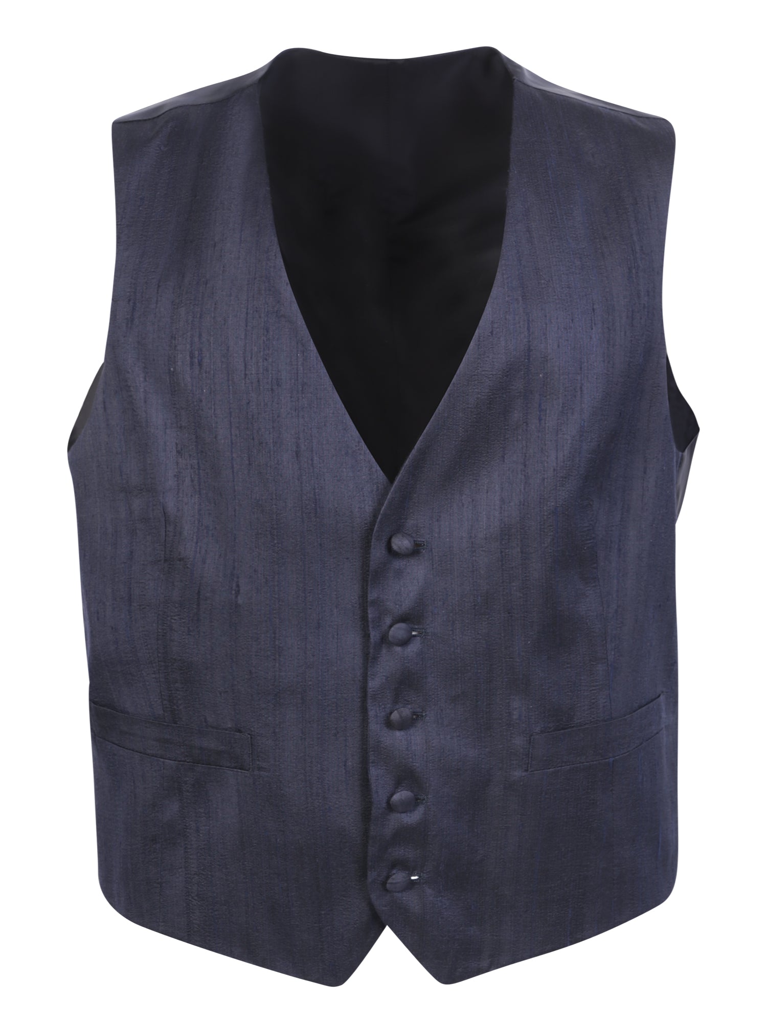 Blue silk waistcoat by Lardini. The brand remains faithful to its sartorial heritage, giving this garment impeccable cuts and clean lines