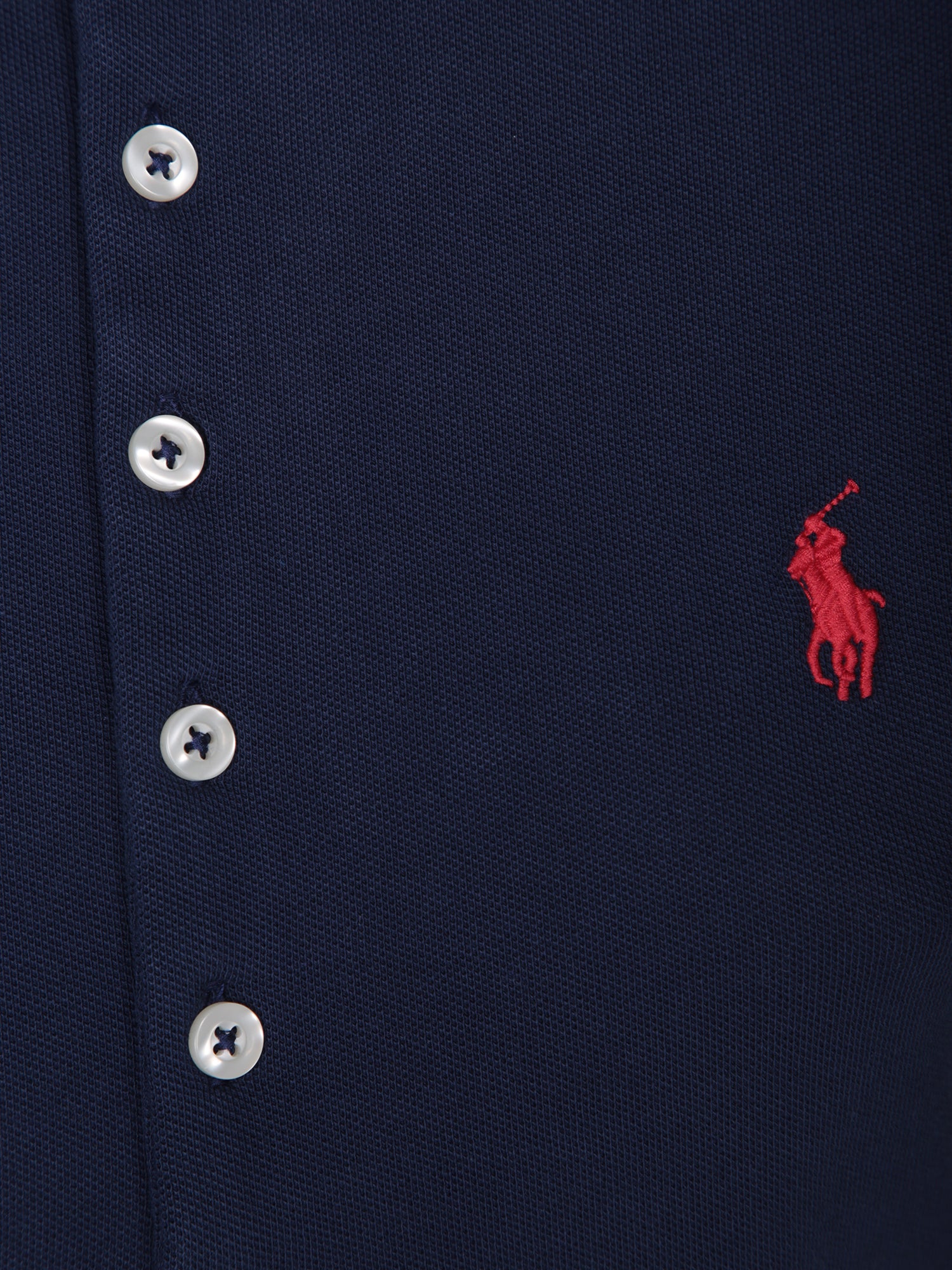 Short sleeves. Piqué cotton fabric. Polo collar with button closure.