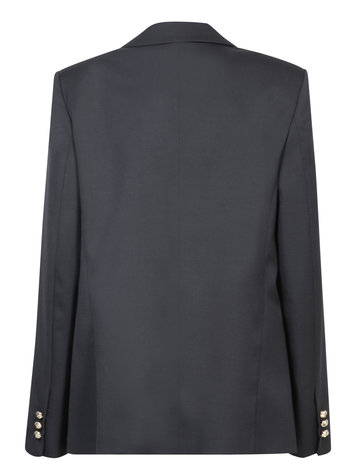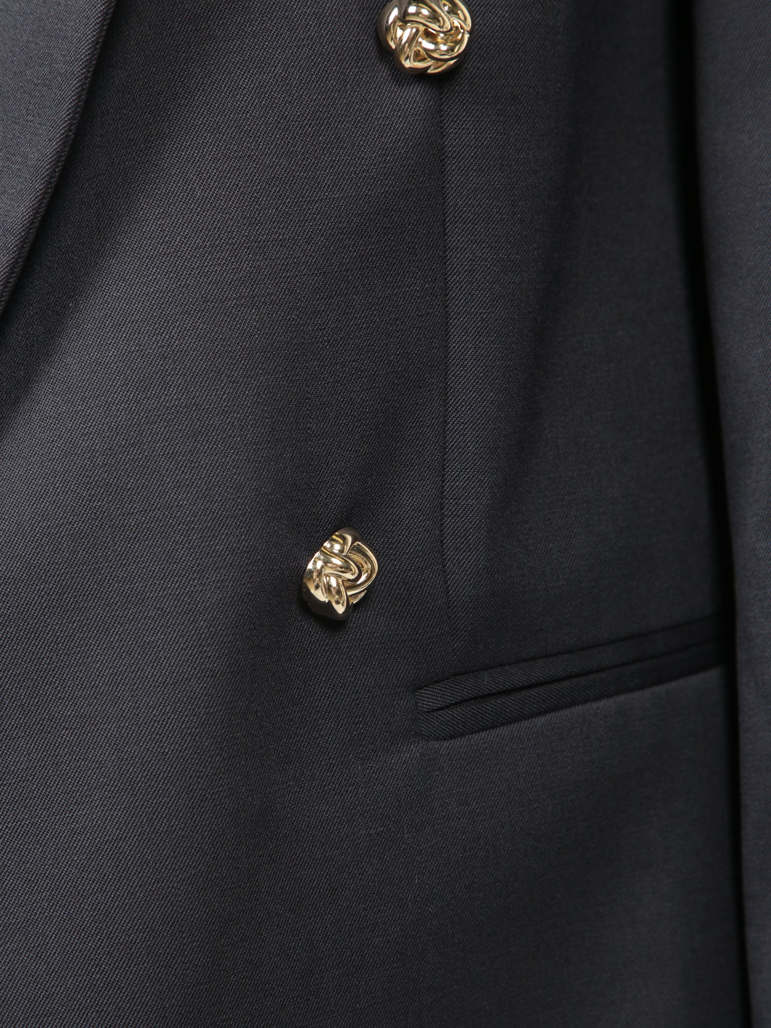 Blue stretch wool fabric jacket. Regular fit. Decorative buttons on cuffs and front. Flap pockets.