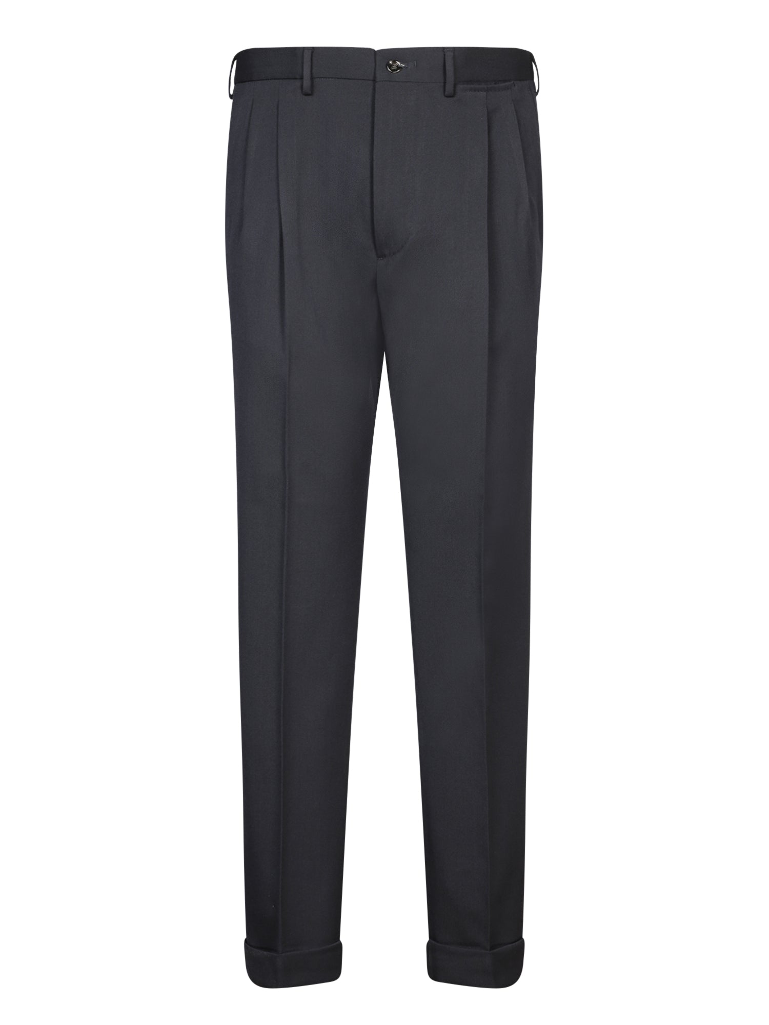 Stretch wool pants. Pleated design. Zip and button closure.