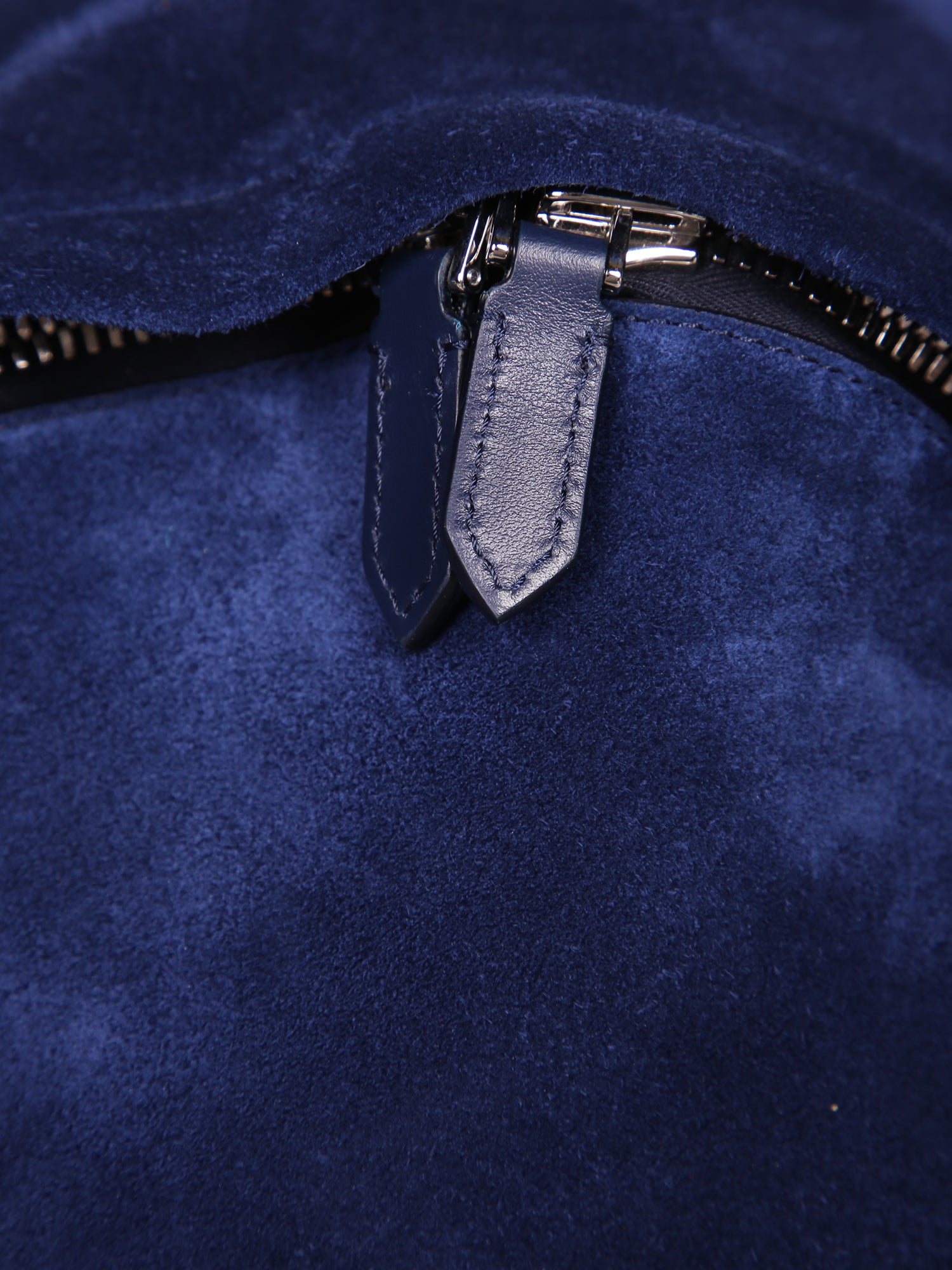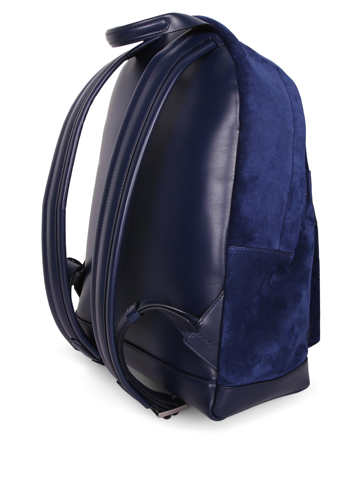 High-quality suede backpack with leather details. Features an external zip pocket and refined metal zippers.