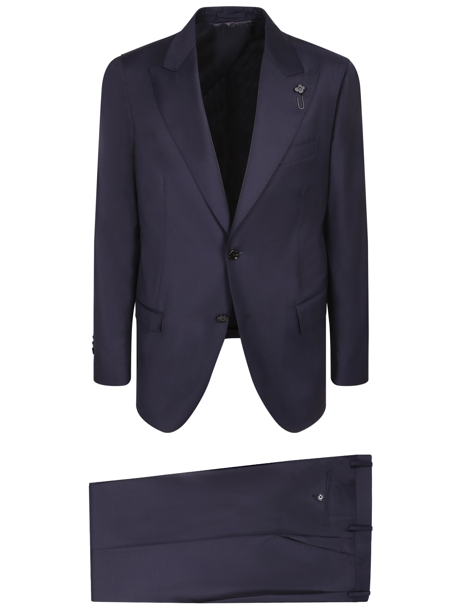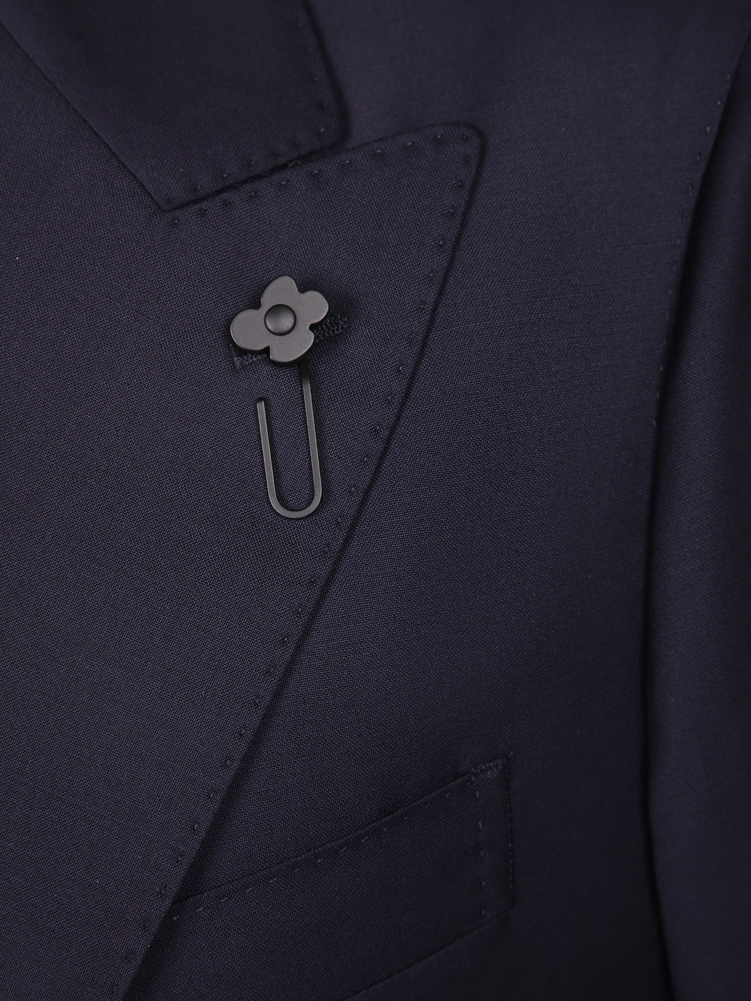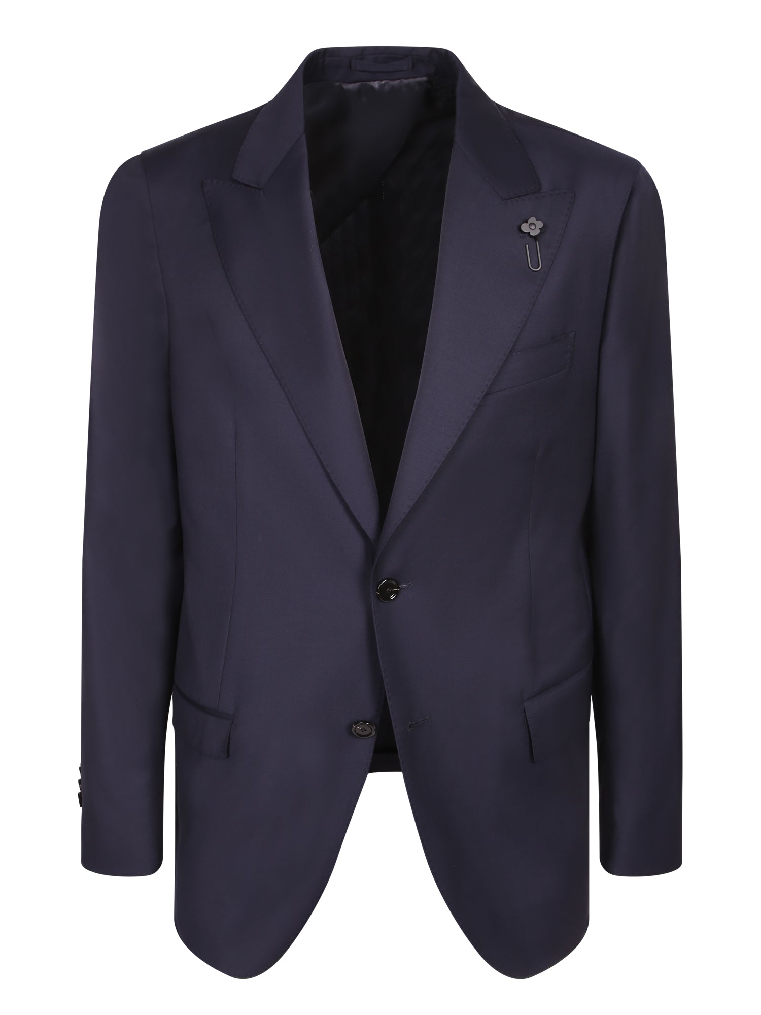 Classic cut with peaked lapels. Micro-textured wool fabric. Deep blue color.