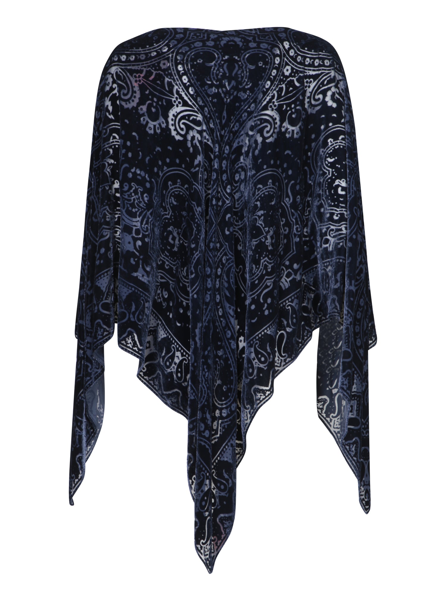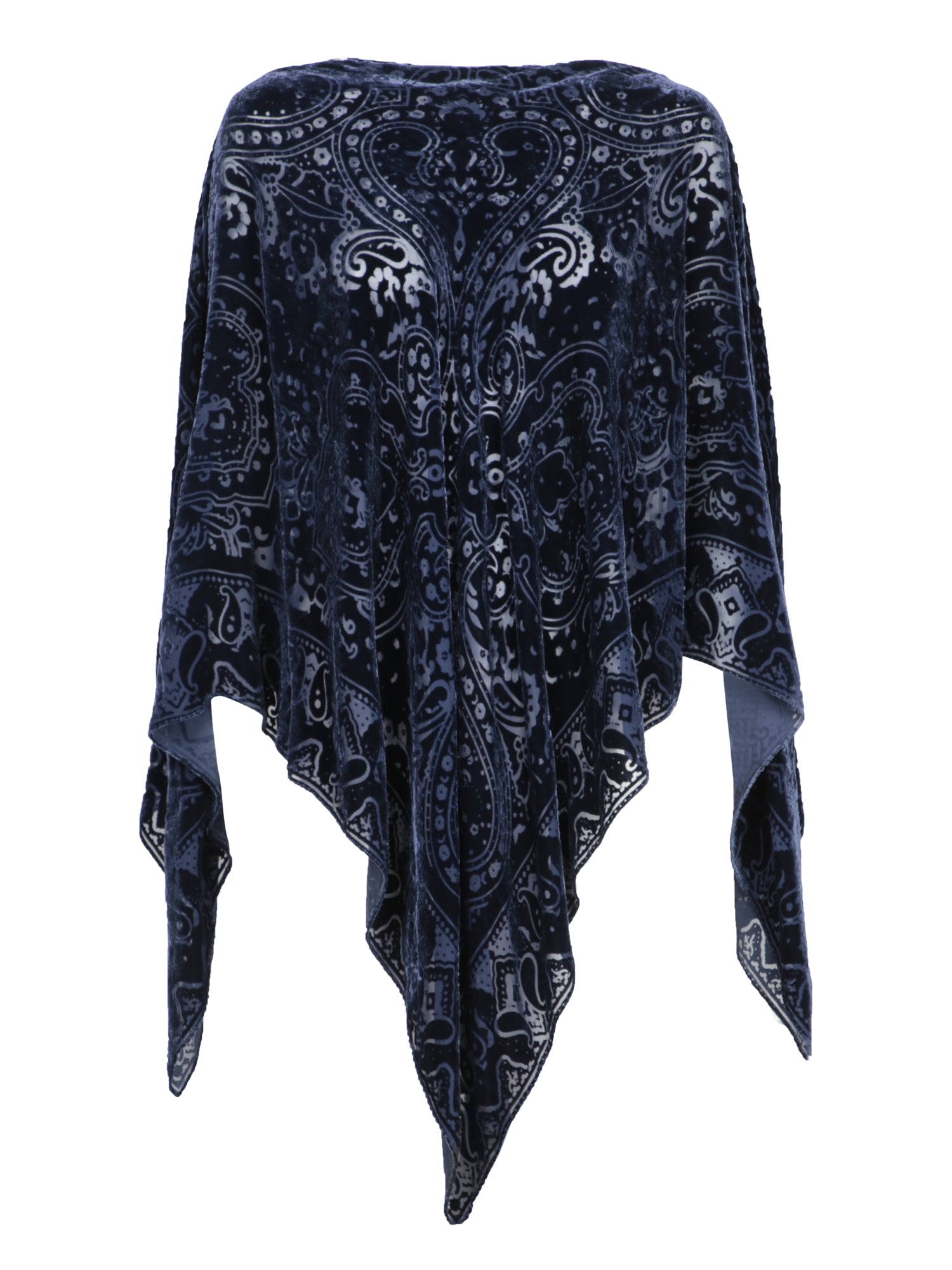 Poncho featuring Paisley pattern. Jacquard velvet trims. Wide and comfortable fit.