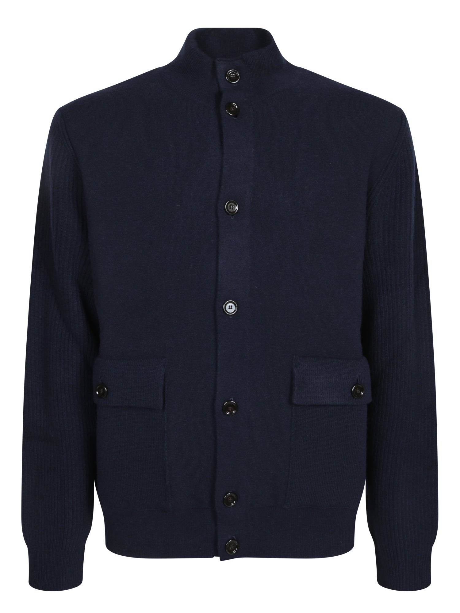 Wool blouson with button closure. Flap front pockets. Raised collar.