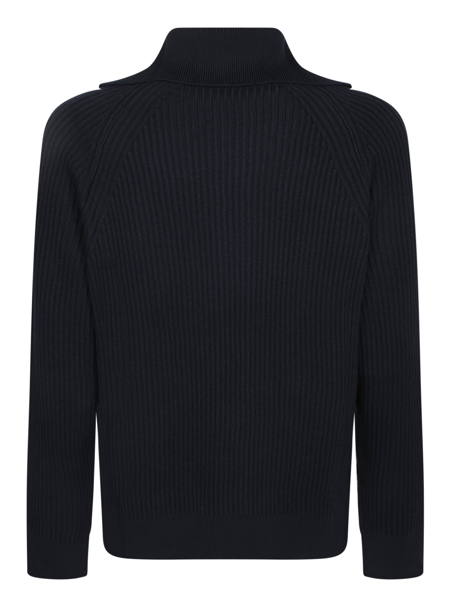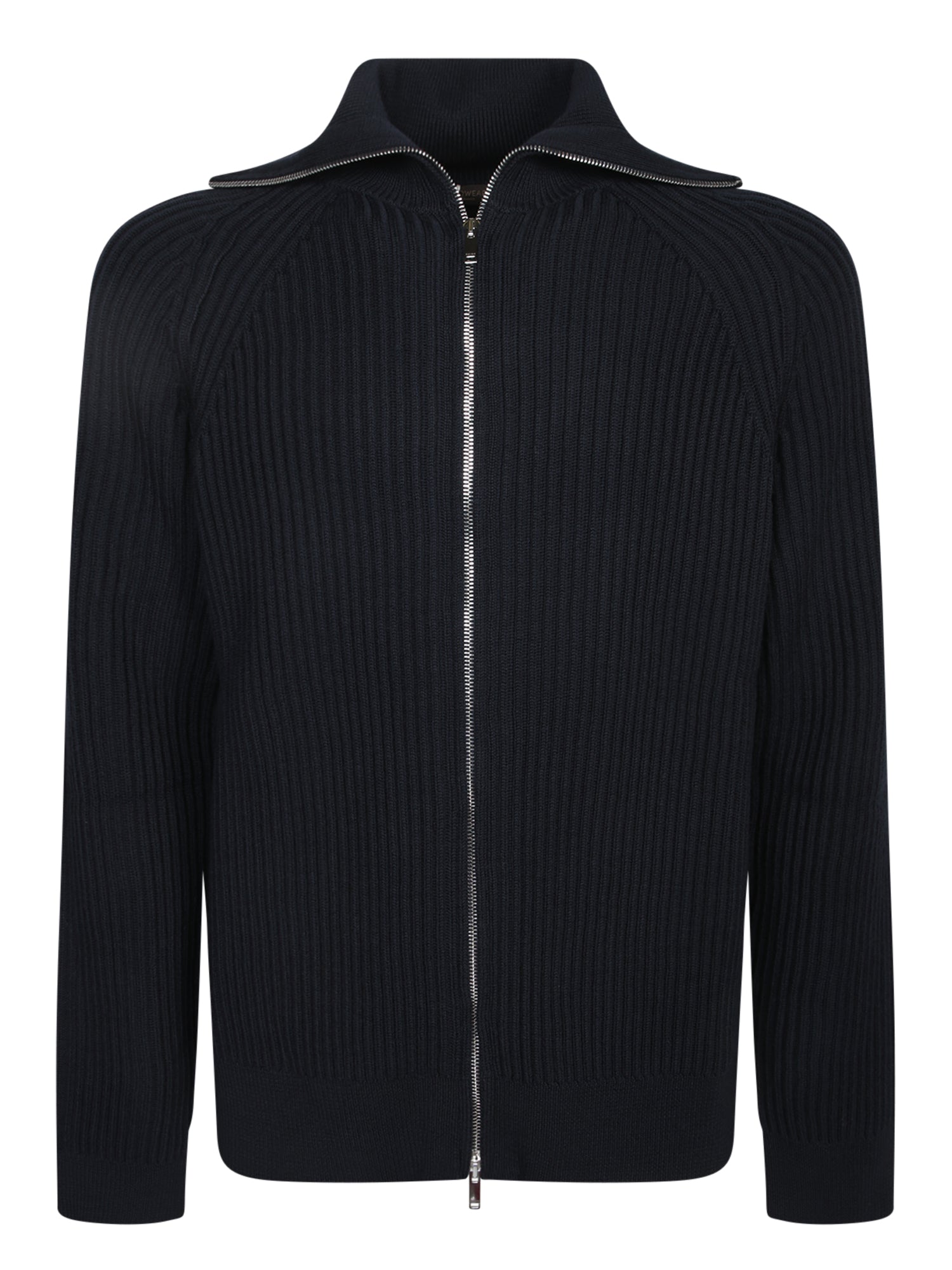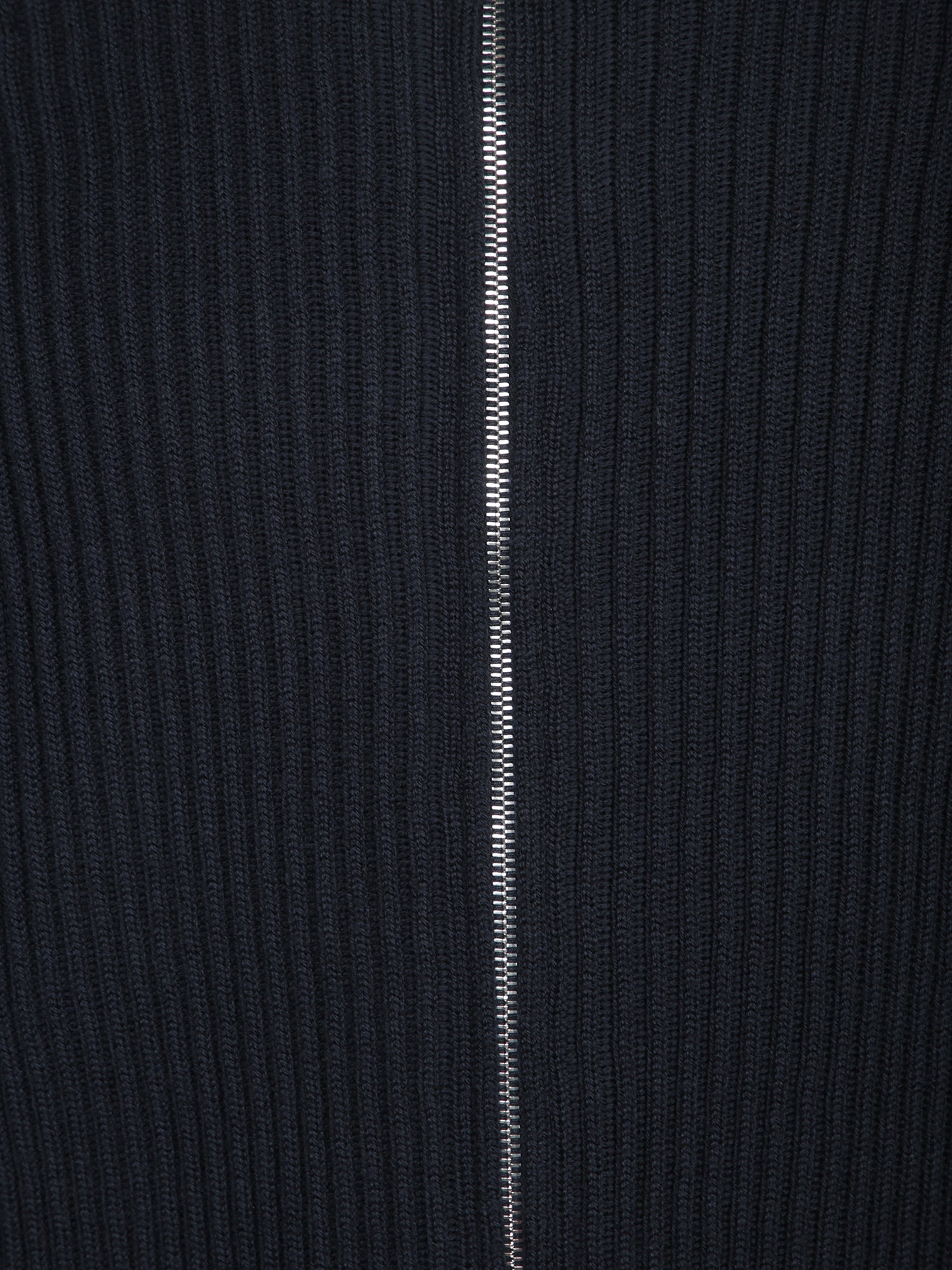 Wool sweater with full zip closure. High collar and vertical ribs.